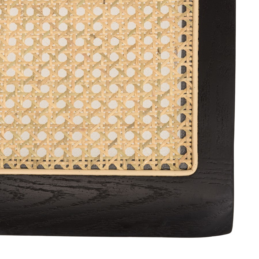 PIERRE - Lot de 2 chaises assise bois noir|rotin naturel pieds métal