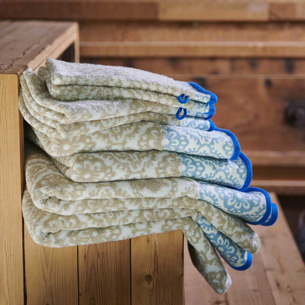 - Het stijlvolle jacquard motief brengt kleur in de badkamer!