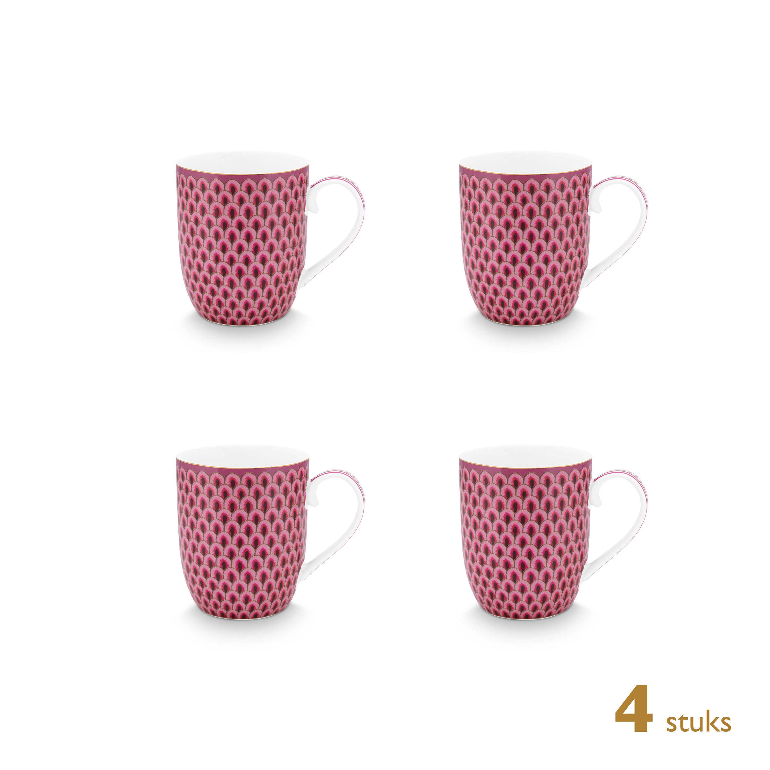 Pip Studio Koffiekoppen - Flower Festival Donker Roze - 145ml - 4 St.