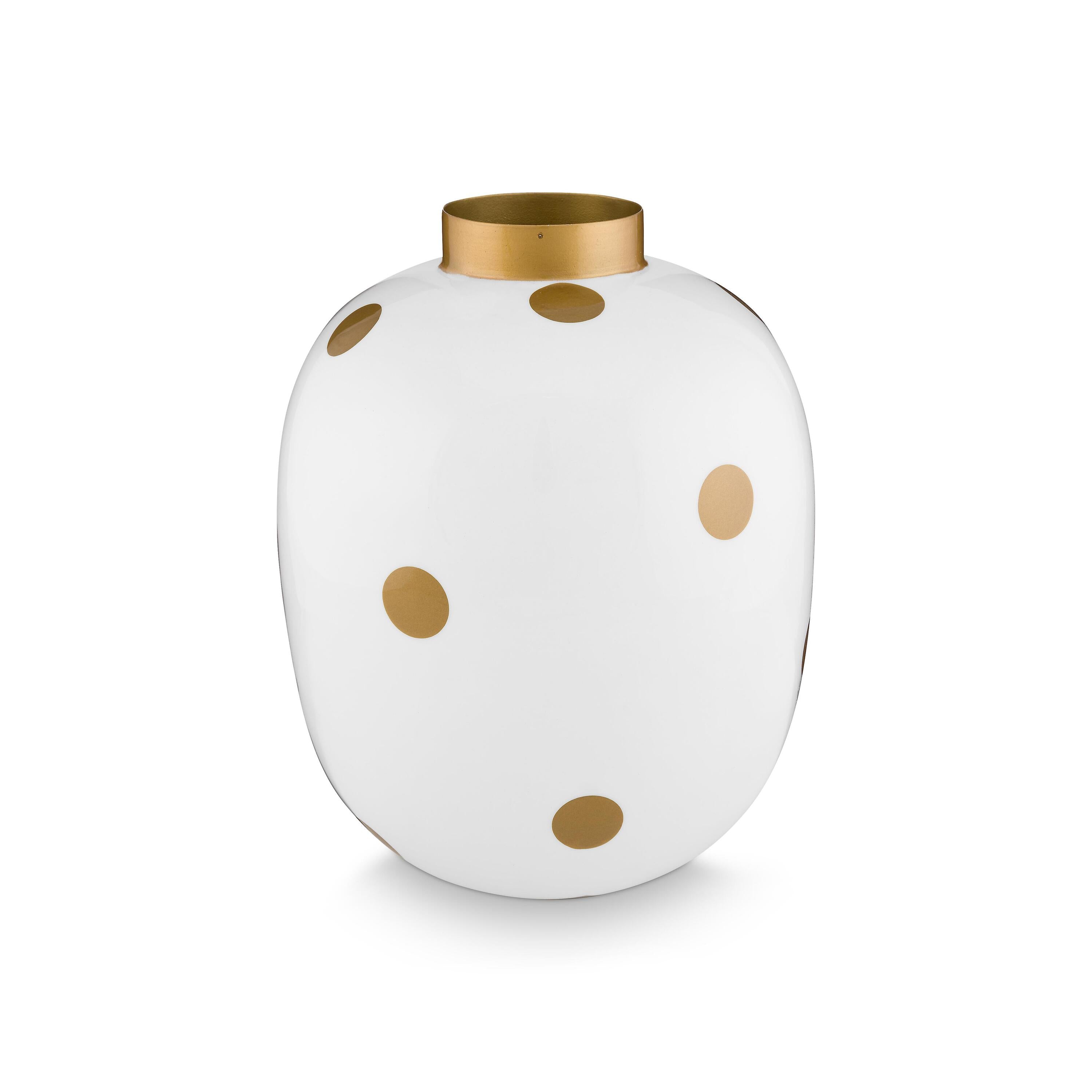 Pip Studio Vaas Dots - Bloemenvaas van Metaal - Wit| Goud - 32cm