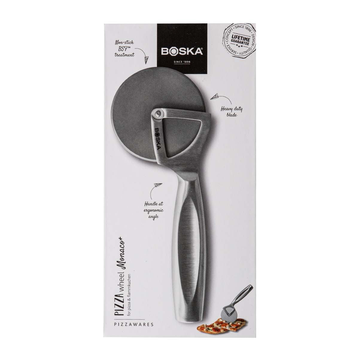 Snijd je favoriete pizza in eetbare punten met de Pizzasnijder Monaco+. Non-stick door BSF™ en met een stevig, ergonomisch handvat. De gehele snijder is van hoogwaardig roestvrijstaal gemaakt en wiebelt niet tijdens het snijden. Non-stick door BSF™ Je pizza snijden zonder dat alles er aan vast blijft kleven? Dat kan met deze pizzasnijder! Door de speciale BSF™ behandeling is de pizzaroller non-stick. Dit chemicaliën vrije non-stickoppervlak blijft de gehele levensduur perfect behouden en slijt niet. Zeer stevige pizzasnijder Pizzasnijders kunnen soms wiebelig en onstabiel zijn. Dat is bij deze BOSKA Pizzasnijder niet het geval! Door het handige ontwerp snij je eenvoudig door elke pizza en pizzakorst heen. Daarnaast zorgt het ergonomische handvat dat deze perfect in de hand ligt, wat de ideale grip en controle biedt. Gaan zeer lang mee door hoge kwaliteit Was deze pizzasnijder na gebruik met de hand af. Een sopje van warm water en afwasmiddel is genoeg.
