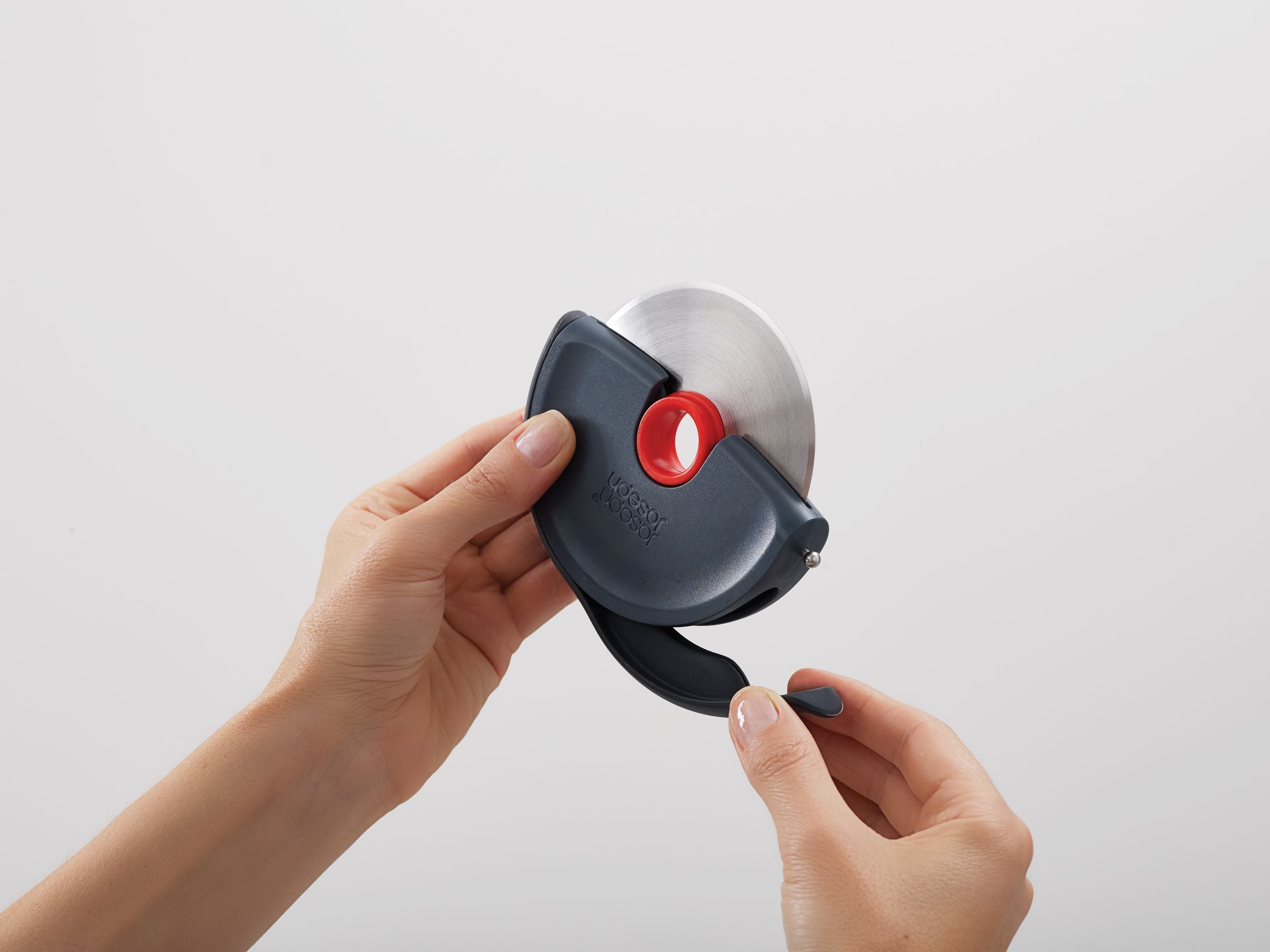 Wat schoonmaken en opbergen betreft, is de Disc ook erg praktisch. Zo kunt u het snijblad uit het handvat halen om het schoon te maken. Verder kunt u een siliconen beschermlaag uit het handvat vouwen en om het mes heenslaan, hierdoor kunt u uw mes veilig opbergen.