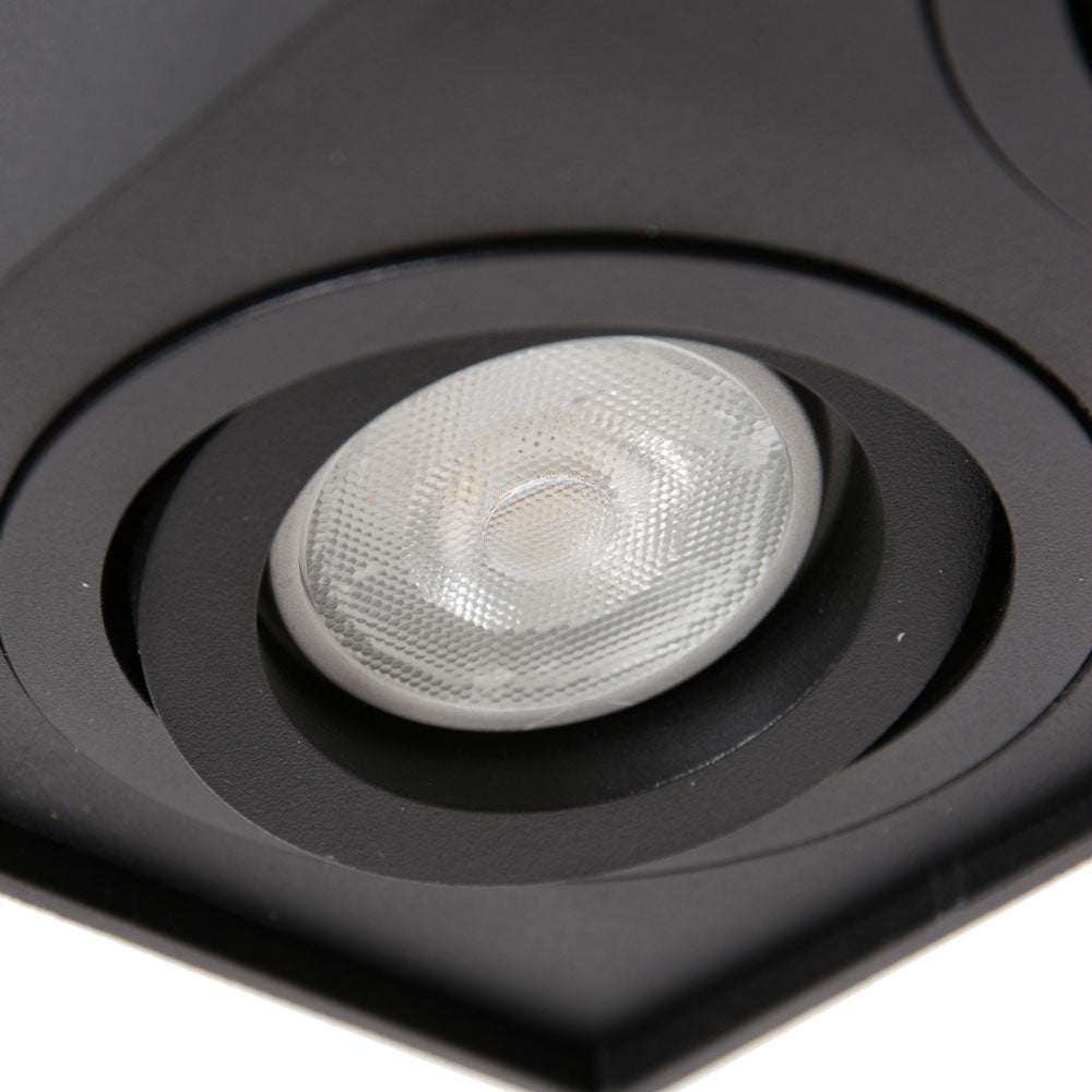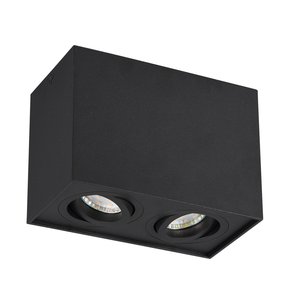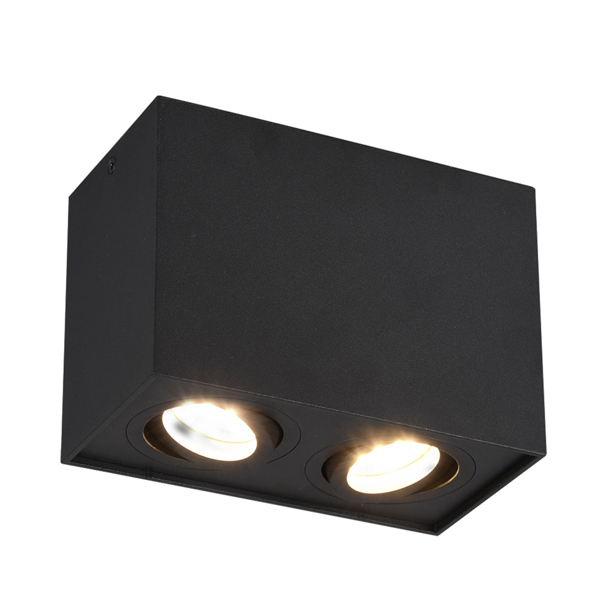 De plafondlamp / opbouw spot BISCUIT valt op door zijn minimalistische ontwerp en elegante strakke look. De twee ingebouwde spots zijn draaibaar en kantelbaar. U kunt hierdoor lichtbundel optimaal richten, daar waar u het licht nodig heeft. Het metalen armatuur is uitgevoerd in mat zwart. Met de maatvoering lxbxh van 17,8x9,6x12,5 cm wordt de centraaldoos in het plafond volledig afgedekt. Voor energiebesparende verlichting wordt het gebruik van een LED-lamp aanbevolen. Dit is een optimaal alternatief voor conventionele of halogeenlampen met een hoge lichtopbrengst en een energiebesparing tot 80%. Bovendien profiteert u bij gebruik van LED-lampen van een lange levensduur, weinig warmte en beschermt u tegelijkertijd het milieu.
