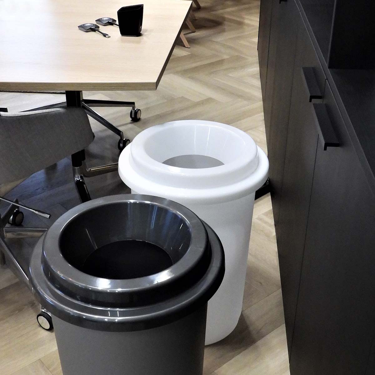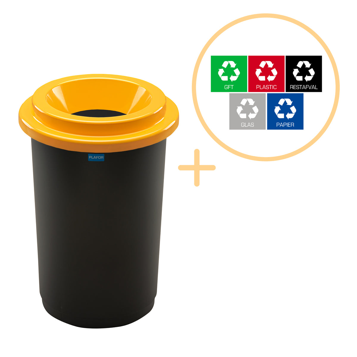 De prullenbak is te verkrijgen met deksels in diverse kleuren. Overweeg het gebruik van een andere kleur prullenbak voor elke soort afval, om zo papier, plastic, glas en andere materialen probleemloos te scheiden en te recyclen. Bij elke prullenbak krijg je bovendien 5 verschillende stickers om duidelijk te markeren waarvoor elke bak bedoeld is. Alle prullenbakken zijn voorzien van een deksel met een opening, wat het weggooien van afval vergemakkelijkt.