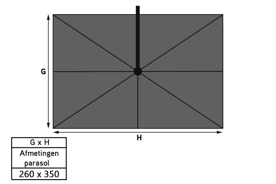 Platinum Challenger T2 3.5x2.6 m. parasol Havanna Taupe met voet en hoes