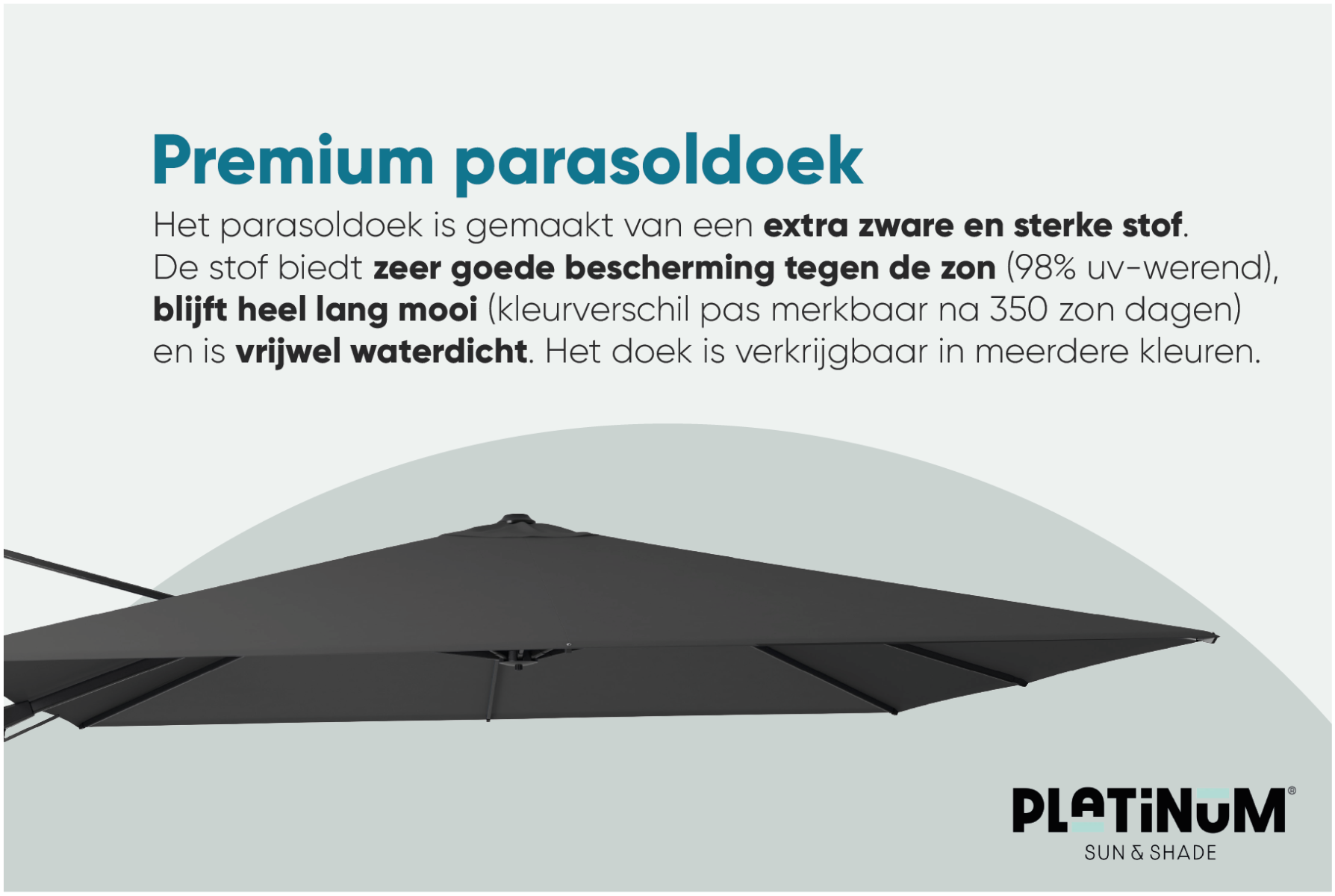 Functionaliteit, design, gebruiksgemak en robuustheid staan centraal bij alle producten van Platinum. Platinum levert parasols in allerlei soorten en maten: van compacte strandparasol tot royale zweefparasol. Dankzij de uitstekende kwaliteit materialen staan de producten van Platinum garant voor jarenlang gebruiksplezier!