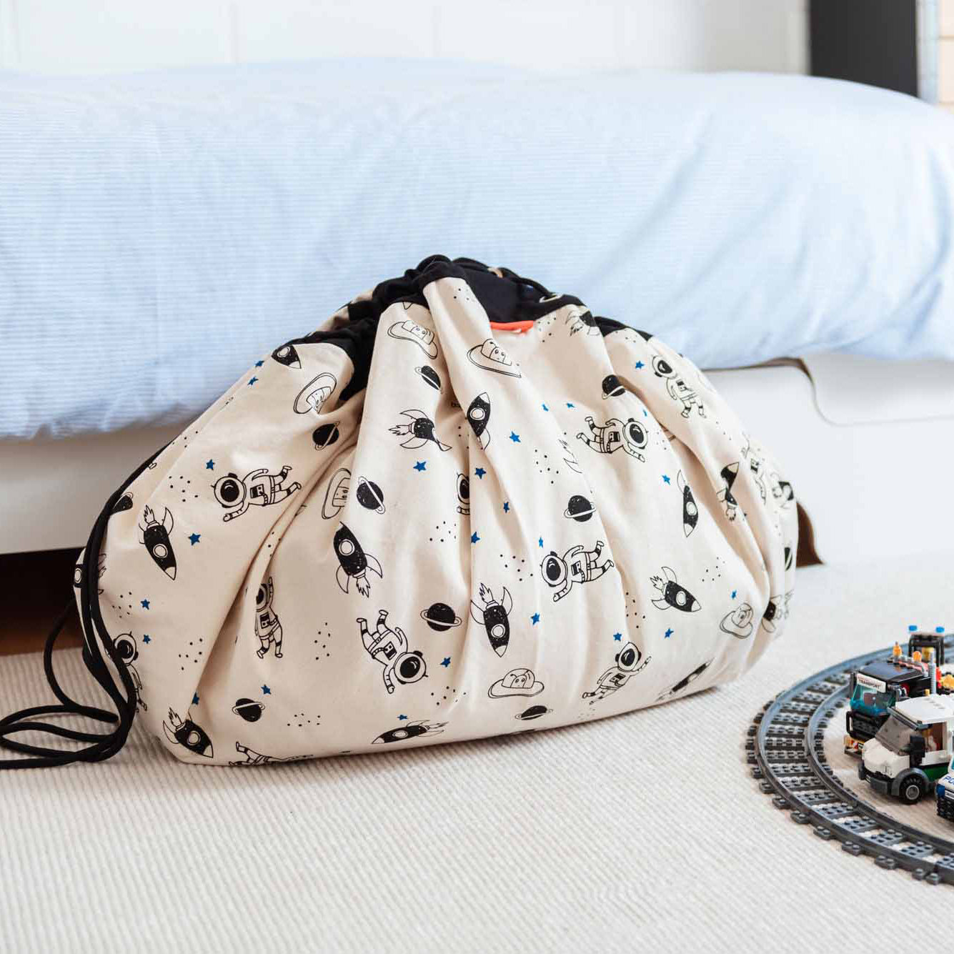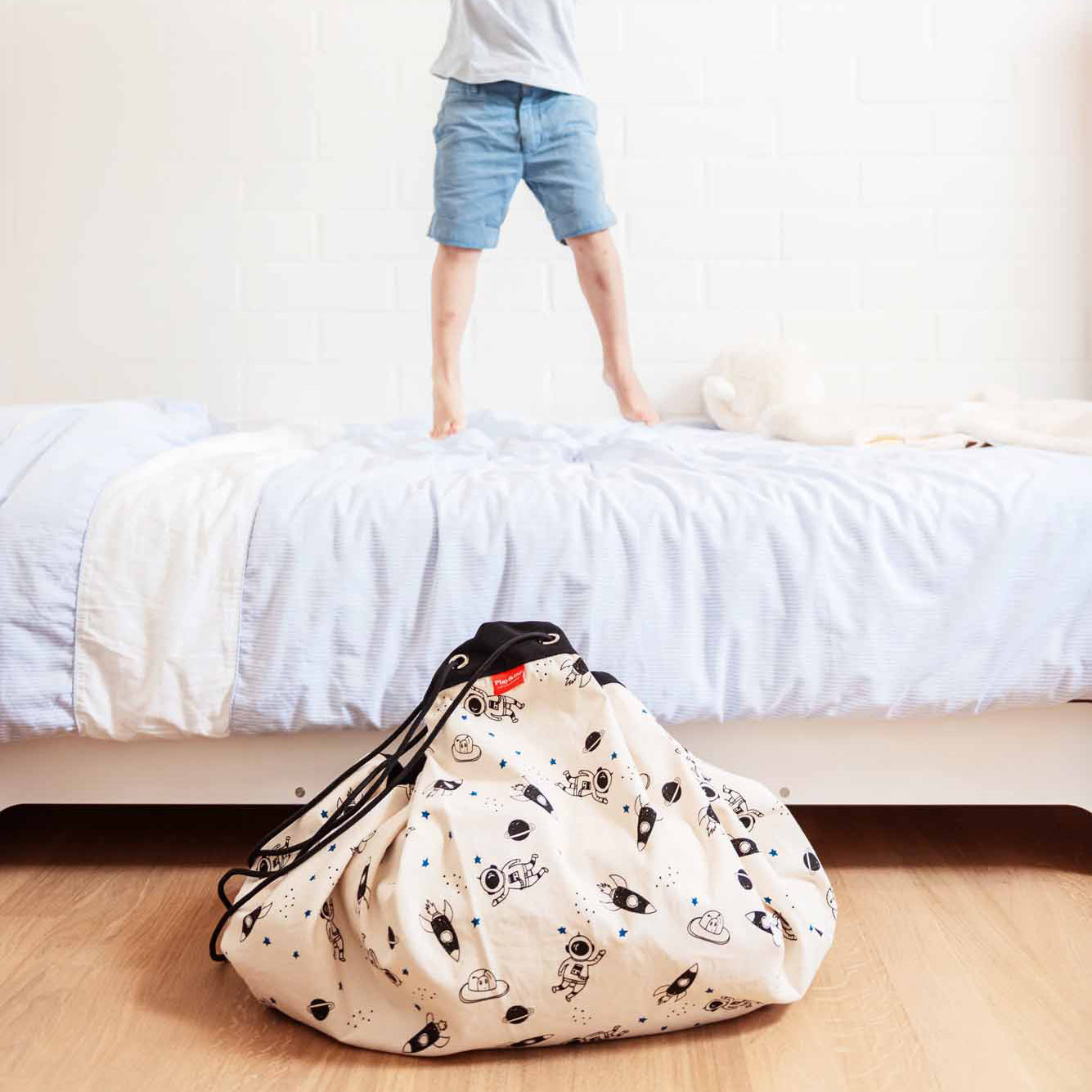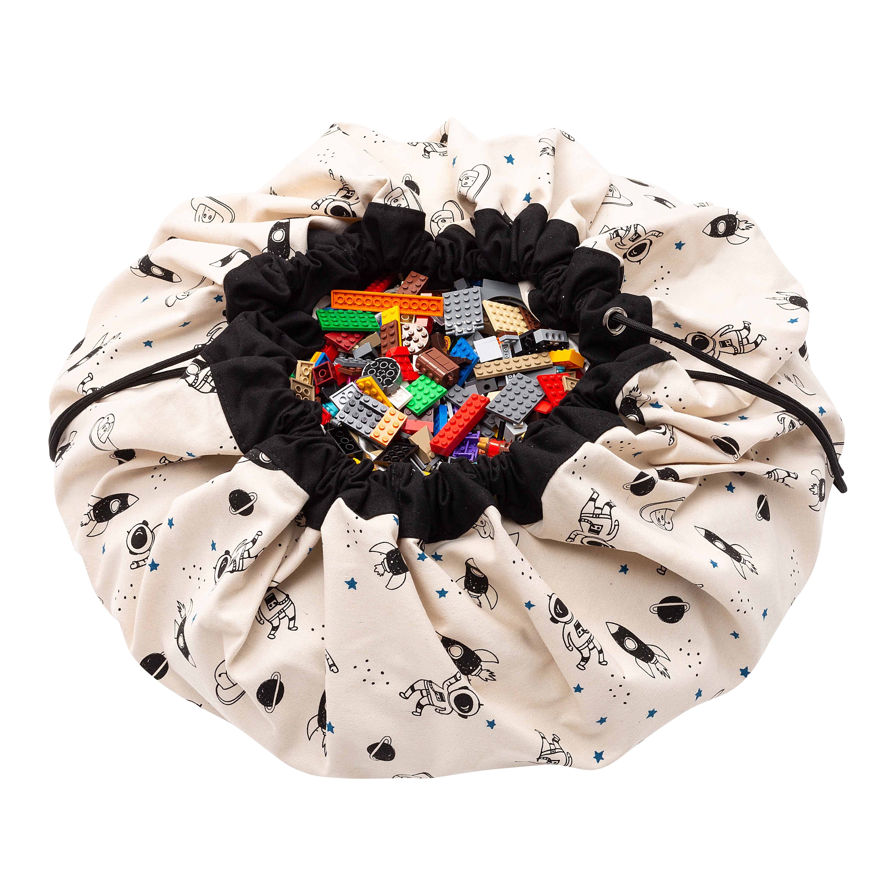 Het Play & Go concept is een simpele en effectieve oplossing voor het opbergen van speelgoed. Het nodigt niet alleen uit om te spelen, maar ook om op te ruimen. Deze 2-in-1 speelmat en opberger knoop je namelijk gemakkelijk dicht met alle speeltjes erin.