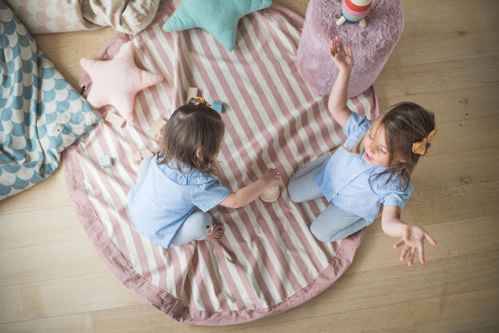 Het Play & Go concept is een simpele en effectieve oplossing voor het opbergen van speelgoed. Het nodigt niet alleen uit om te spelen, maar ook om op te ruimen. Deze 2-in-1 speelmat en opberger knoop je namelijk gemakkelijk dicht met alle speeltjes erin.
