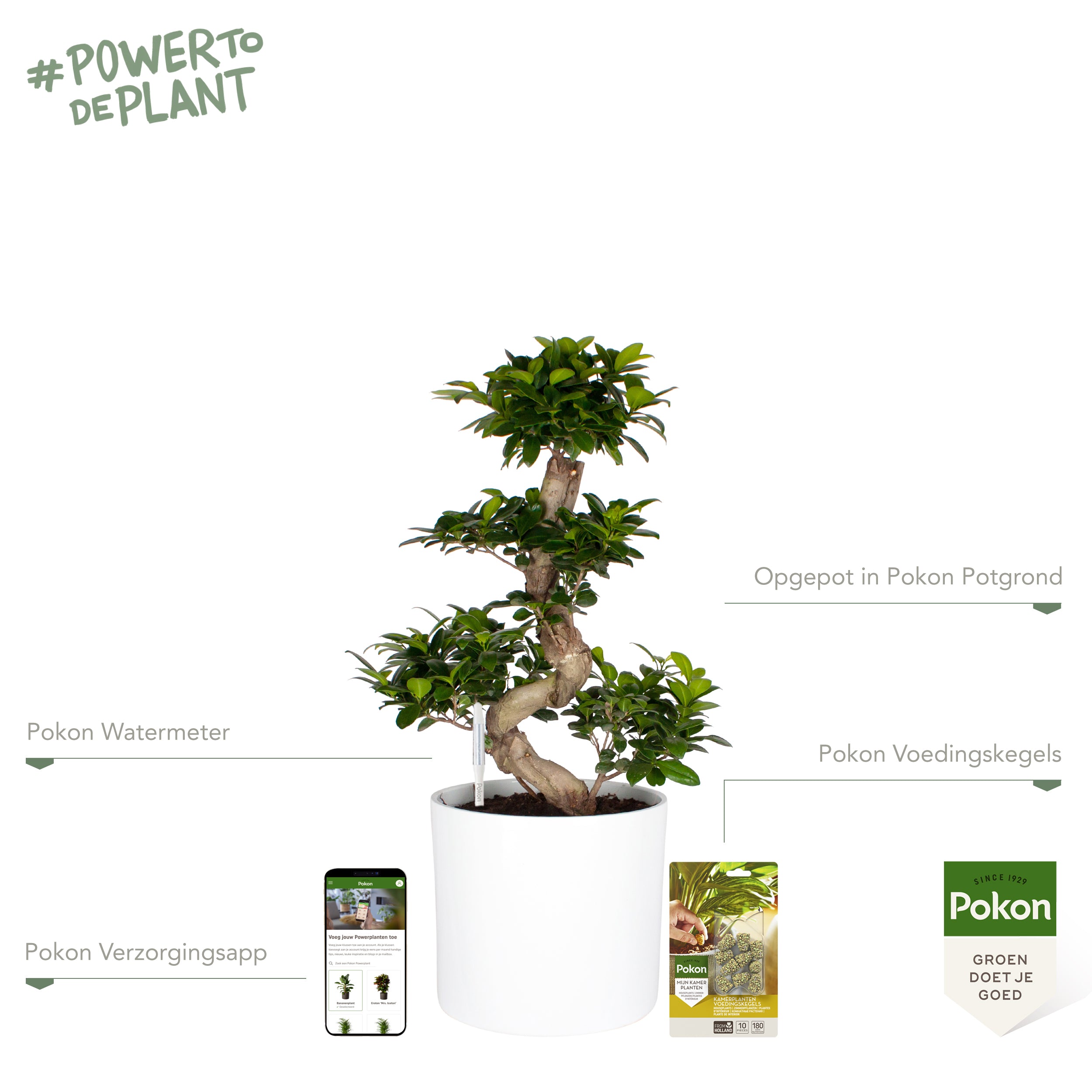 Wil jij wat groen toevoegen aan jouw interieur, maar ben jij niet zo goed met groen? Geen probleem! Met de Pokon Ficus Bonsai haal je een echte eyecatcher in huis. En de verzorging? Daar helpen we jou graag bij. Bij elke Pokon Powerplant krijg je namelijk een watermeter, voedingskegels en notificaties vanuit de Pokon app. Zo wordt de verzorging supermakkelijk en zijn groene vingers overbodig!
