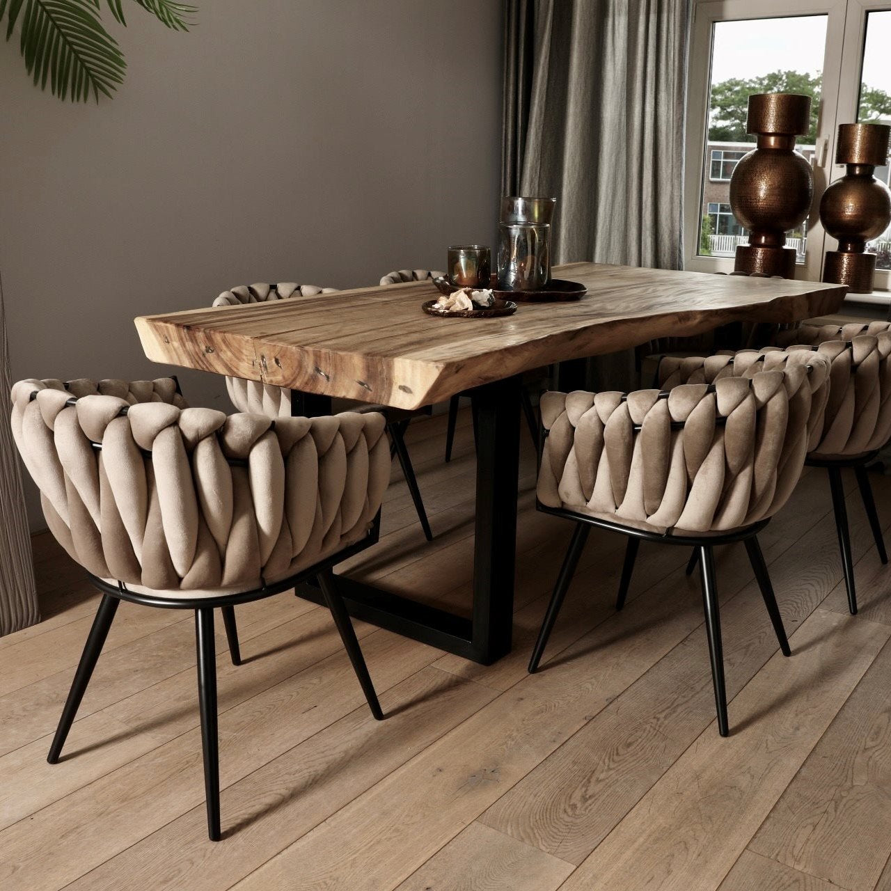 Pole to Pole Knot Eetkamerstoel - Velvet - Zand Wit