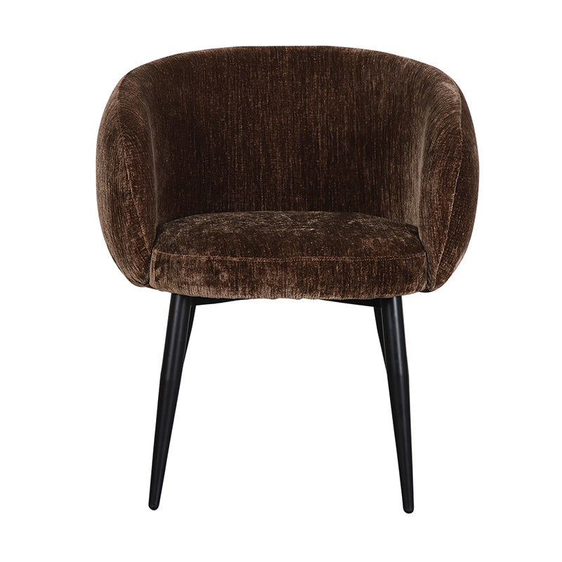 The chair stands on sturdy black metal legs that give it a minimal and timeless character. It blends easily with wood, stone, or ceramic finishes and fits effortlessly into dining rooms, home offices, or lounge spaces.