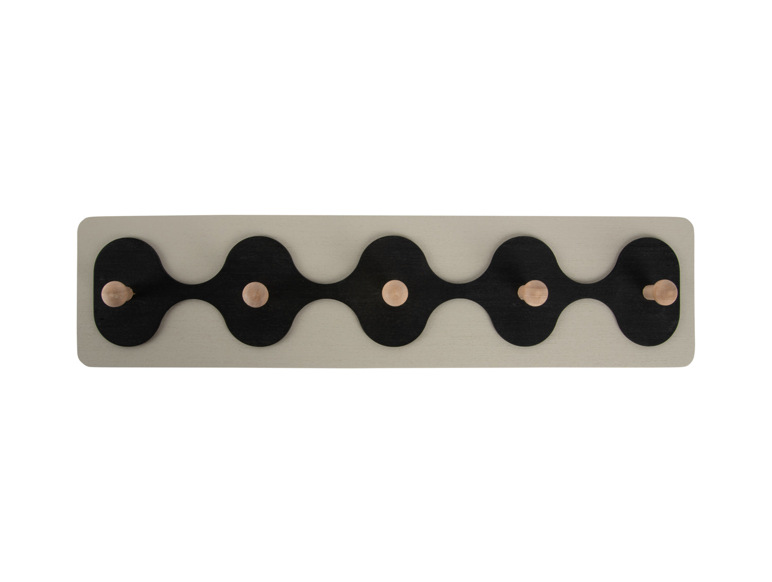 Kapstok Rizar – Present Time. Deze speelse kapstok van Present Time is niet alleen handig in de hal, maar ook perfect voor theedoeken in de keuken of handdoeken in de badkamer. Verkrijgbaar in twee maten en stijlvolle zwart-wit contrasten, met houten haakjes als warme finishing touch.