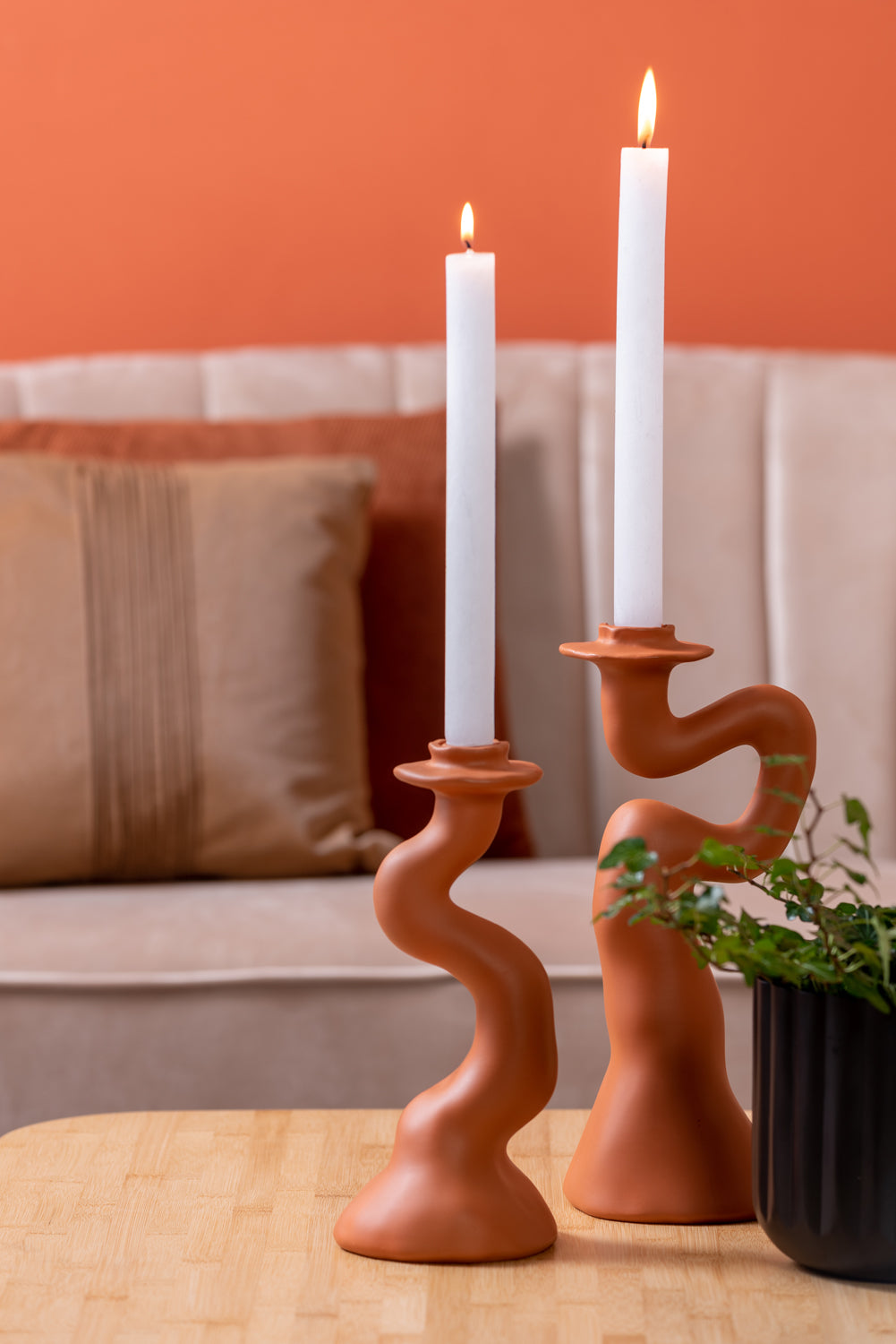 Present Time Kandelaar Organic Swirl - Oranje - 12x11,5x25,5cm