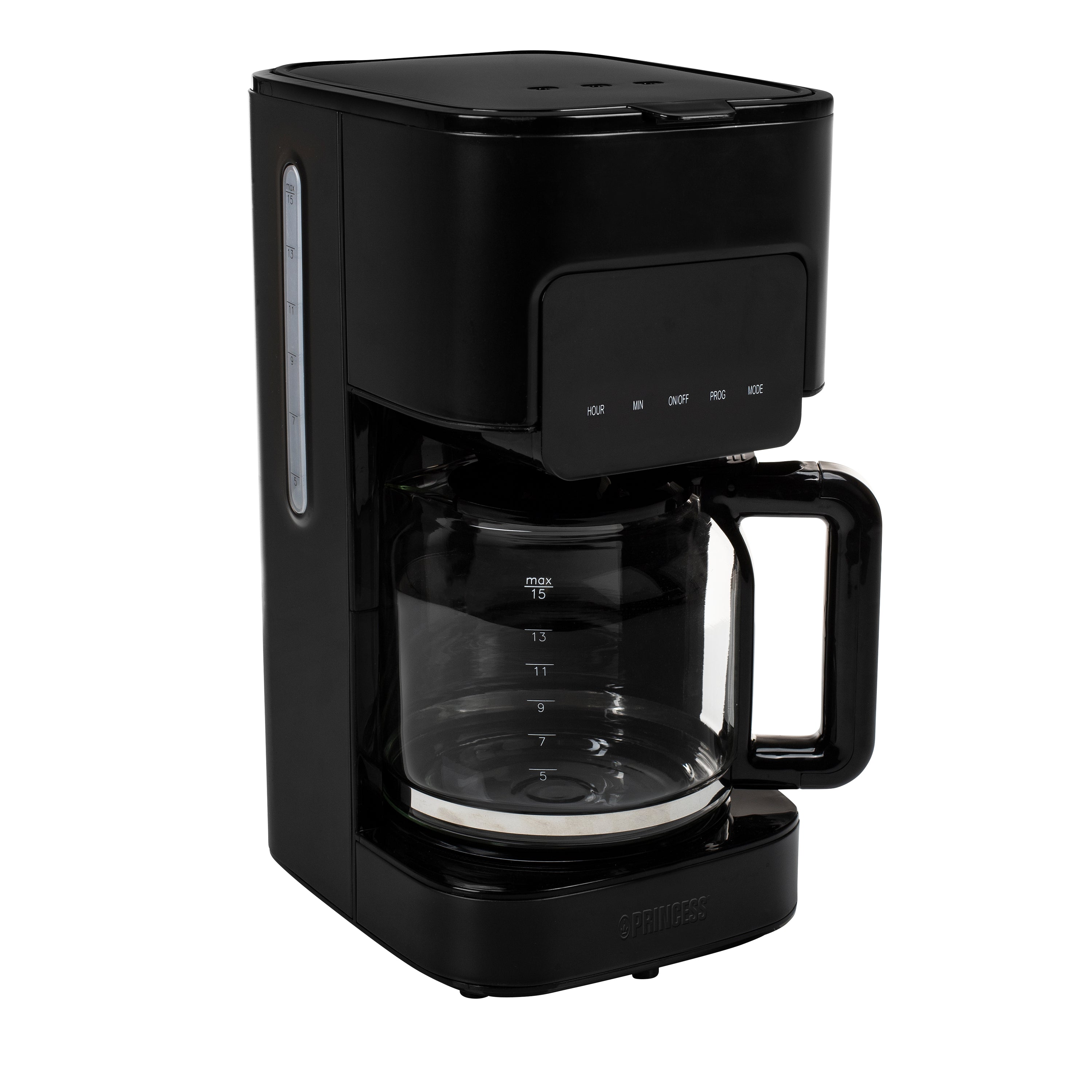 De Princess Black Steel 246014 koffiezetapparaat maakt 1,5 liter koffie wat precies in de glazen kan past. Deze hoeveelheid is ongeveer gelijk aan 15 kopjes koffie. Genoeg voor iedereen! Bij dit stijlvolle matzwarte koffiezetapparaat heb je geen papieren filters meer nodig, maar vul je gewoon het uitneembare filter met je favoriete snelfiltermaling of versgemalen bonen. Je krijgt een handig maatschepje meegeleverd. Met de hoeveelheid water bepaal je zelf de sterkte van de koffie. Aan de hand van de waterniveaumeter weet je precies hoeveel water je toevoegt.