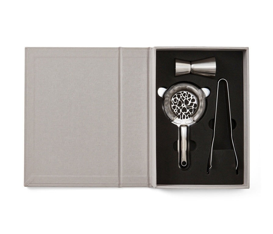 - Cocktailset met een barmaatje, een hawthorne zeef en een ijstang.