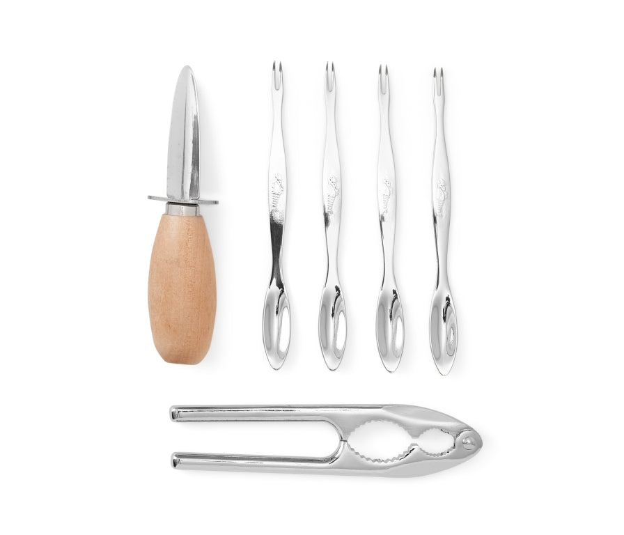 - Set met een oestermes, een krab/kreeft kraker en 4 vorkjes.