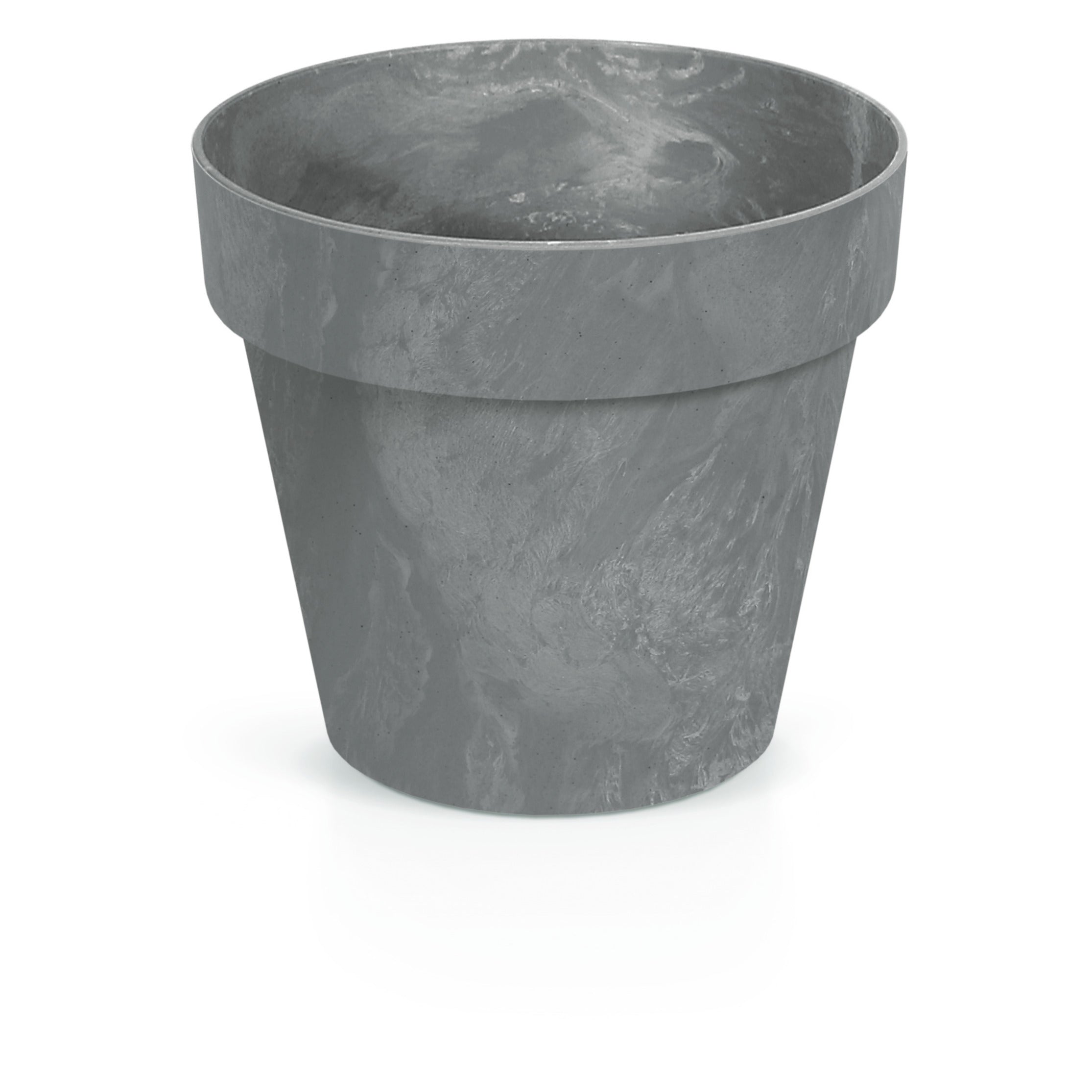 Kunststof bloempotten/plantenpotten in een echte betonlook motief, in de kleur grijs. Formaat: diameter bovenkant: ca 30 cm. Hoogte: ca. 26 cm. Inhoud: ca. 12 liter. Materiaal: stevig kunststof. De bloempotten hebben een gat in de bodem waardoor het overtollige water wegloopt. De potten zijn geschikt voor binnen en buiten gebruik.
