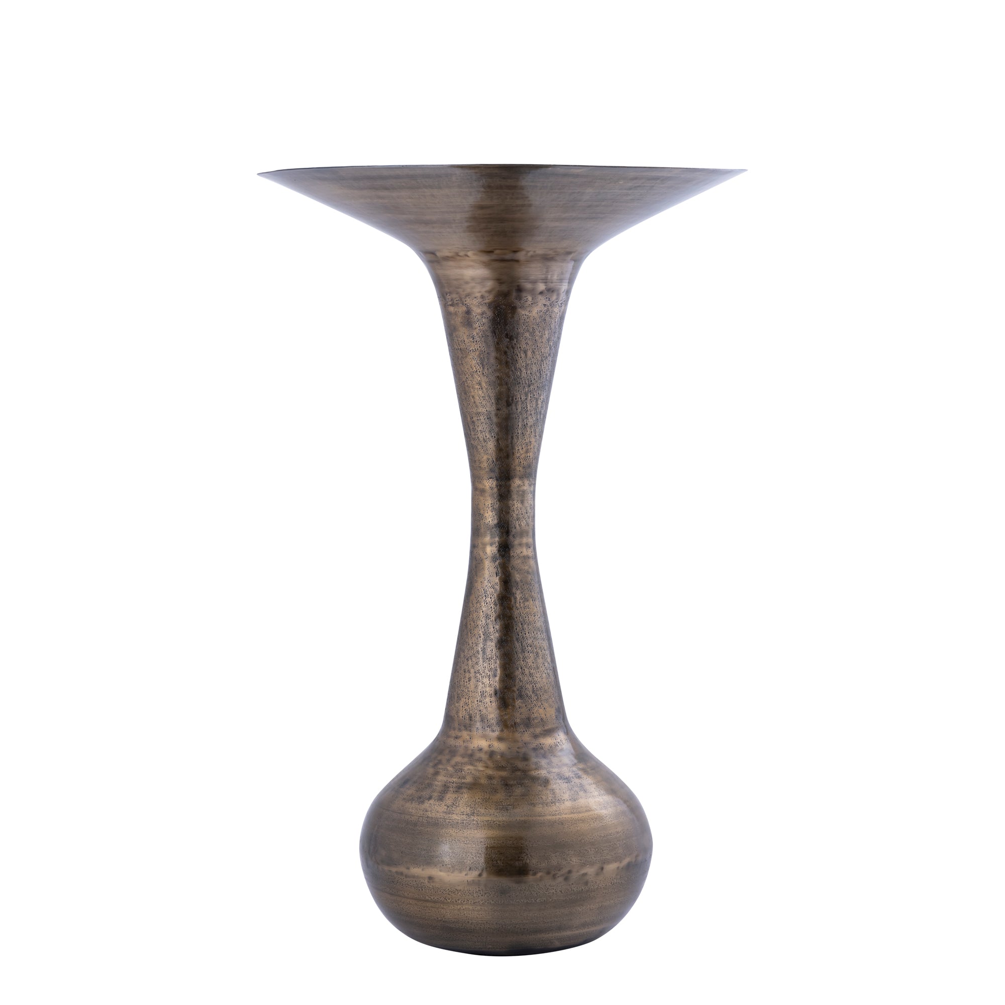 De PTMD Aarna pot heeft een opvallend ontwerp met een antique brass afwerking die het een vintage uitstraling geeft. Het handgemaakte aluminium materiaal en de gedetailleerde vorm zorgen voor een authentieke, tijdloze uitstraling die perfect past in elk interieur dat op zoek is naar een luxe uitstraling.