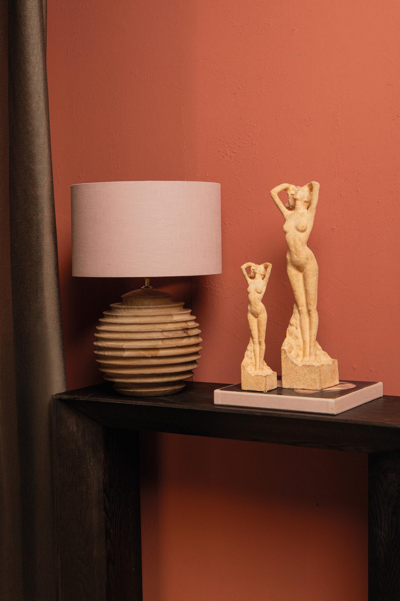 Dit beeld is meer dan een decoratief object; het is een symbool van elegantie en stijl. De combinatie van vorm, kleur en materiaal maakt het een prachtige toevoeging aan elke woonruimte.