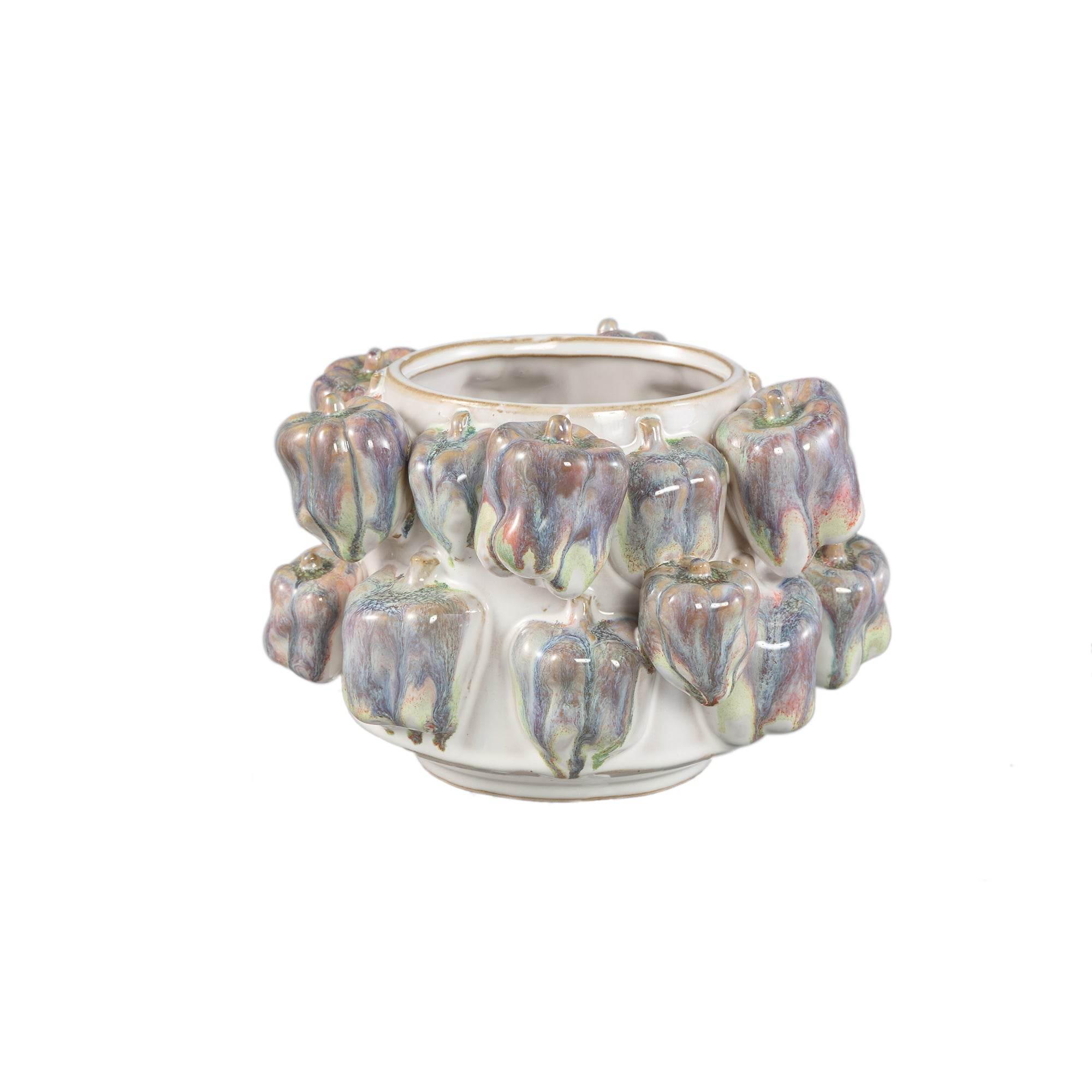 Deze kleine keramieken pot is ontworpen in de vorm van een paprika, wat het een unieke en speelse uitstraling geeft. Ideaal om een vleugje creativiteit toe te voegen aan je interieur.