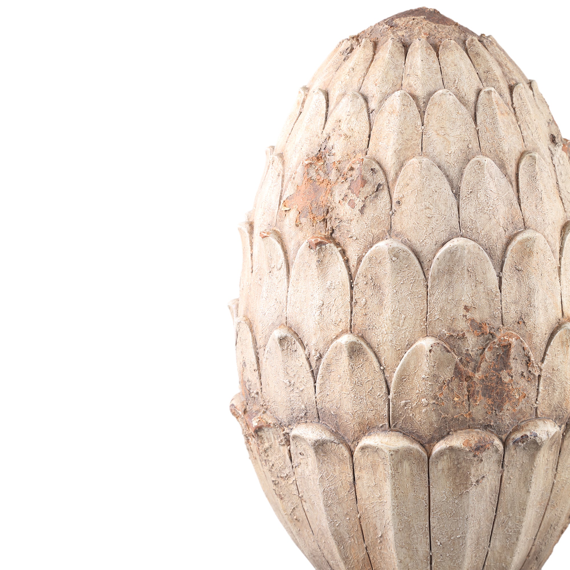 De PTMD Caibyn Grey Magnesia Pinecone Statue A combineert stijl en duurzaamheid in een elegant design. Met zijn grijze antieke afwerking en klassieke vorm is het een prachtige toevoeging aan elk interieur of exterieur.