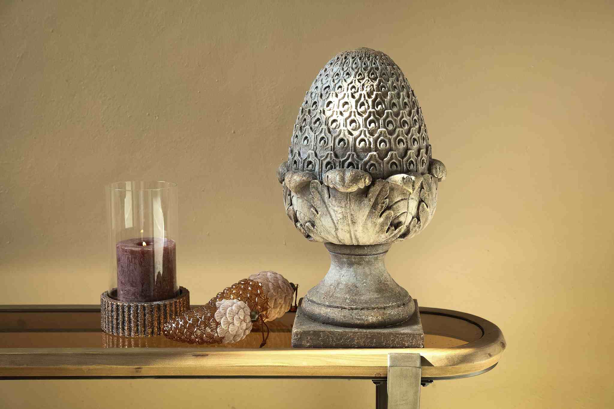 Het ontwerp van de PTMD Caibyn Statue is geïnspireerd op de natuurlijke schoonheid van een dennenappel. De gedetailleerde afwerking van de schubben en de vorm geeft het een realistische uitstraling, waardoor het een uniek en verfijnd decoratief element is voor je huis.