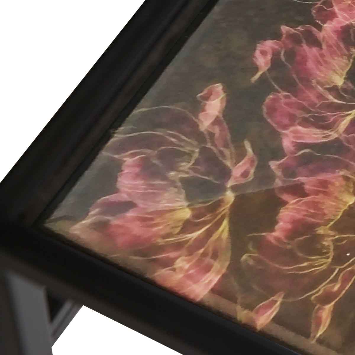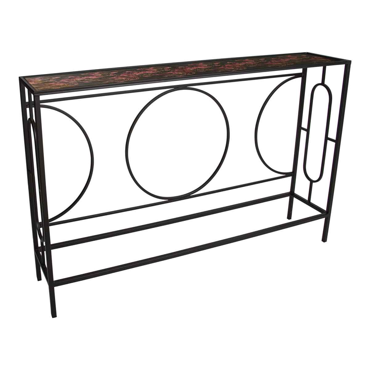 De Dena sidetable is gemaakt van metaal en heeft een glazen top met en paarse print. De smalle breedte van de sidetable maakt het zelfs in de smalste hallen mogelijk de sidetable langs de muur te plaatsen.