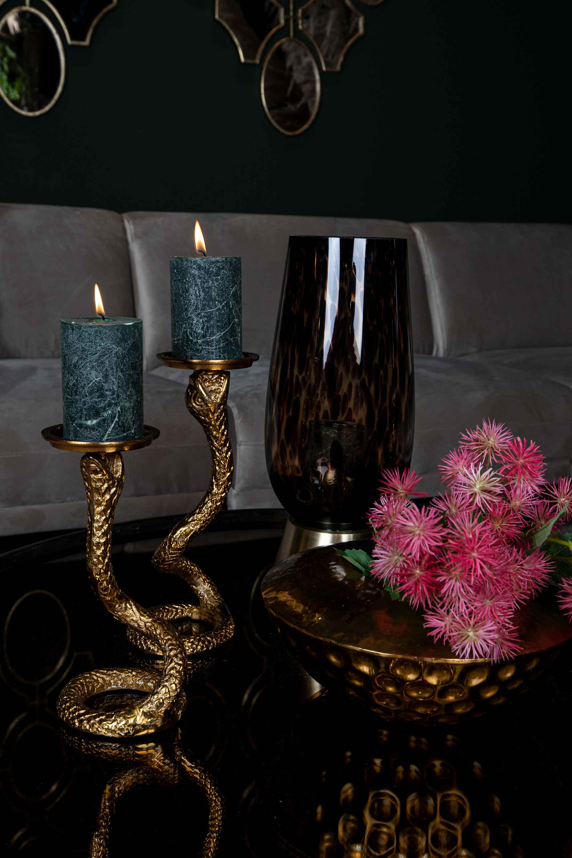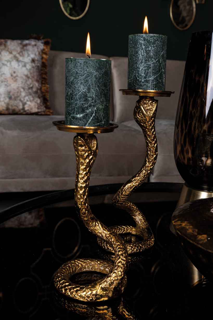 De Eliza kandelaar is een sfeervolle toevoeging aan je interieur. Door het slangen design heeft de kandelaar een sierlijke uitstraling. Dit, in combinatie met de gouden kleur, geeft de kandelaar een antieke look. De Eliza is ook verkrijgbaar in een groter formaat.