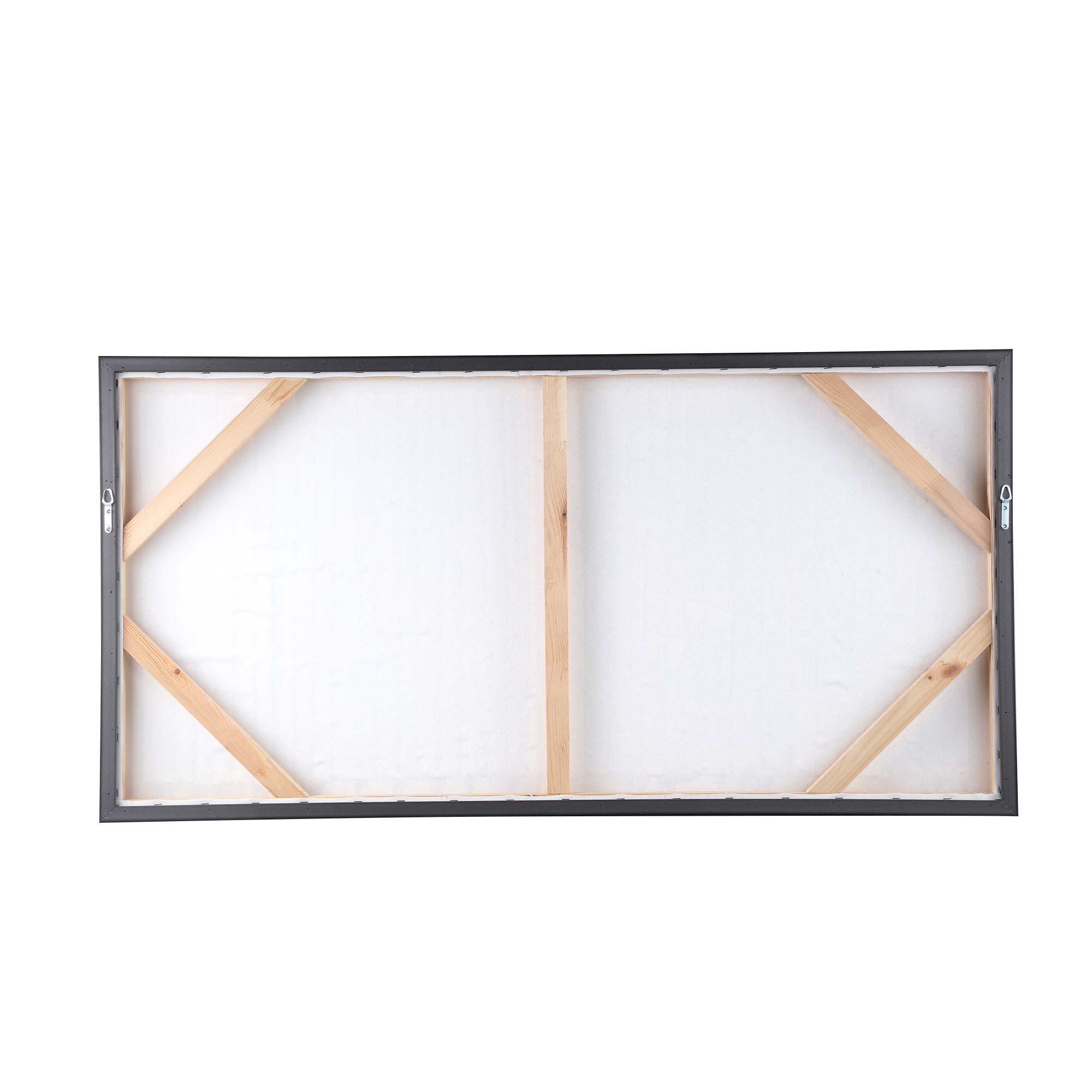 Het paneel heeft een strakke rechthoekige vorm die de ruimte een georganiseerde en moderne uitstraling geeft. Het bruine frame voegt warmte toe en maakt het paneel een veelzijdig element dat gemakkelijk kan worden gecombineerd met verschillende interieurstijlen.