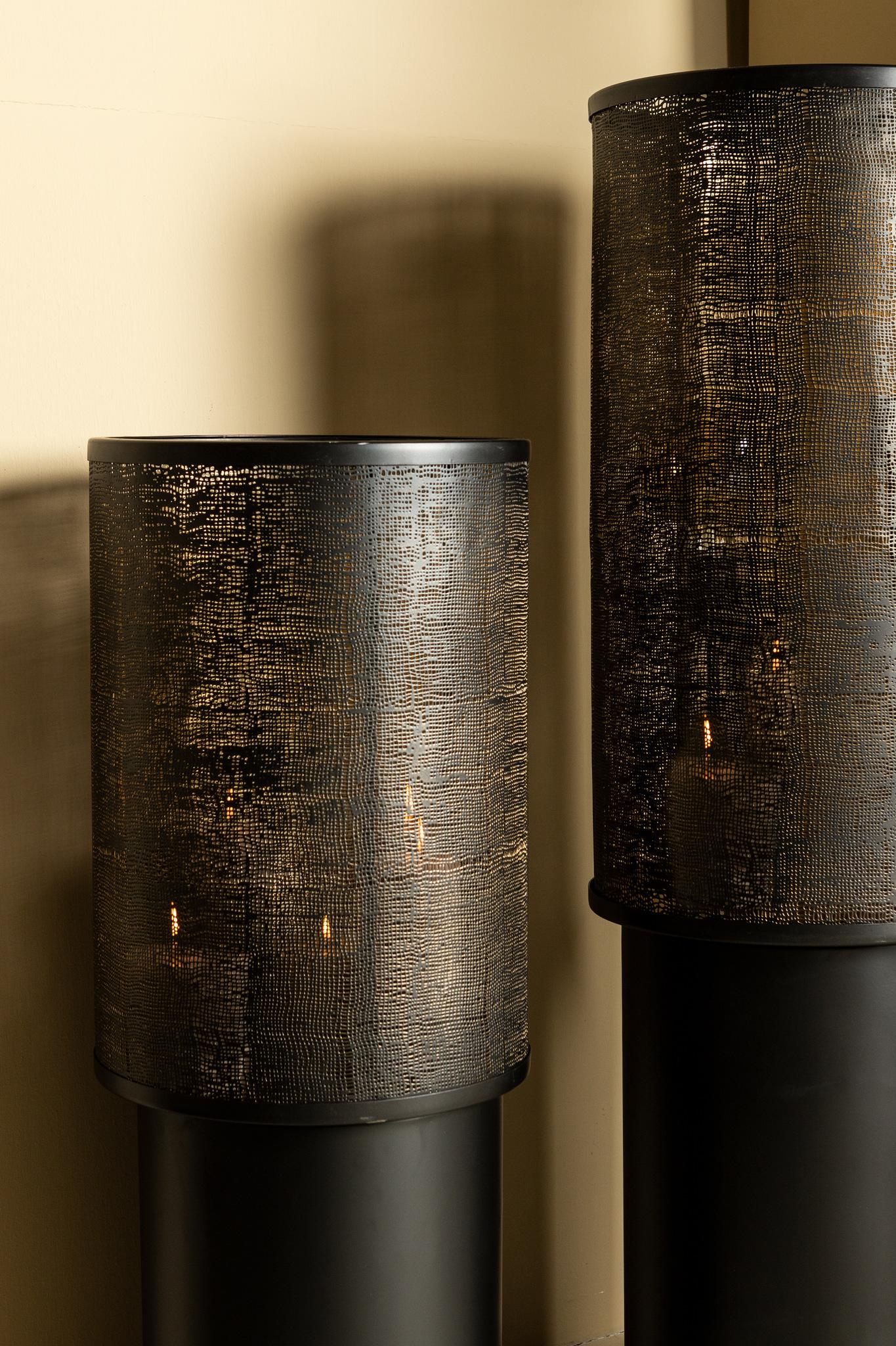 PTMD Jarne Windlicht - 26x26x70 cm - Ijzer - Zwart