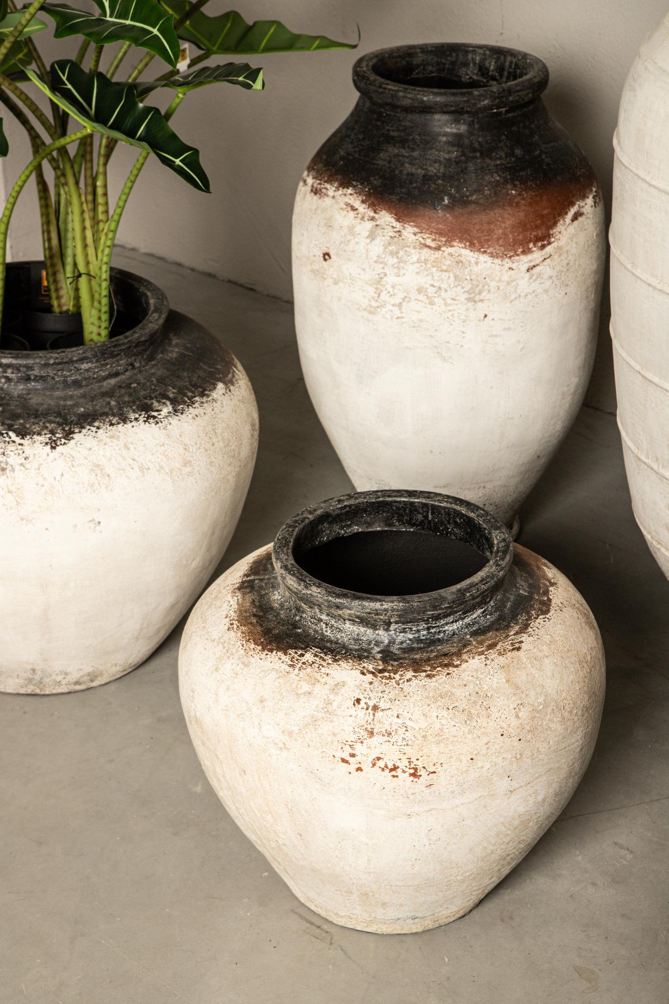 De combinatie van het witte oppervlak en de donkere rand biedt een elegant contrast dat een verfijnd effect creëert. Dit subtiele ontwerp maakt de pot perfect voor het toevoegen van een tijdloze schoonheid aan je interieur. De donkere rand benadrukt de ronde vorm en voegt een moderne uitstraling toe.