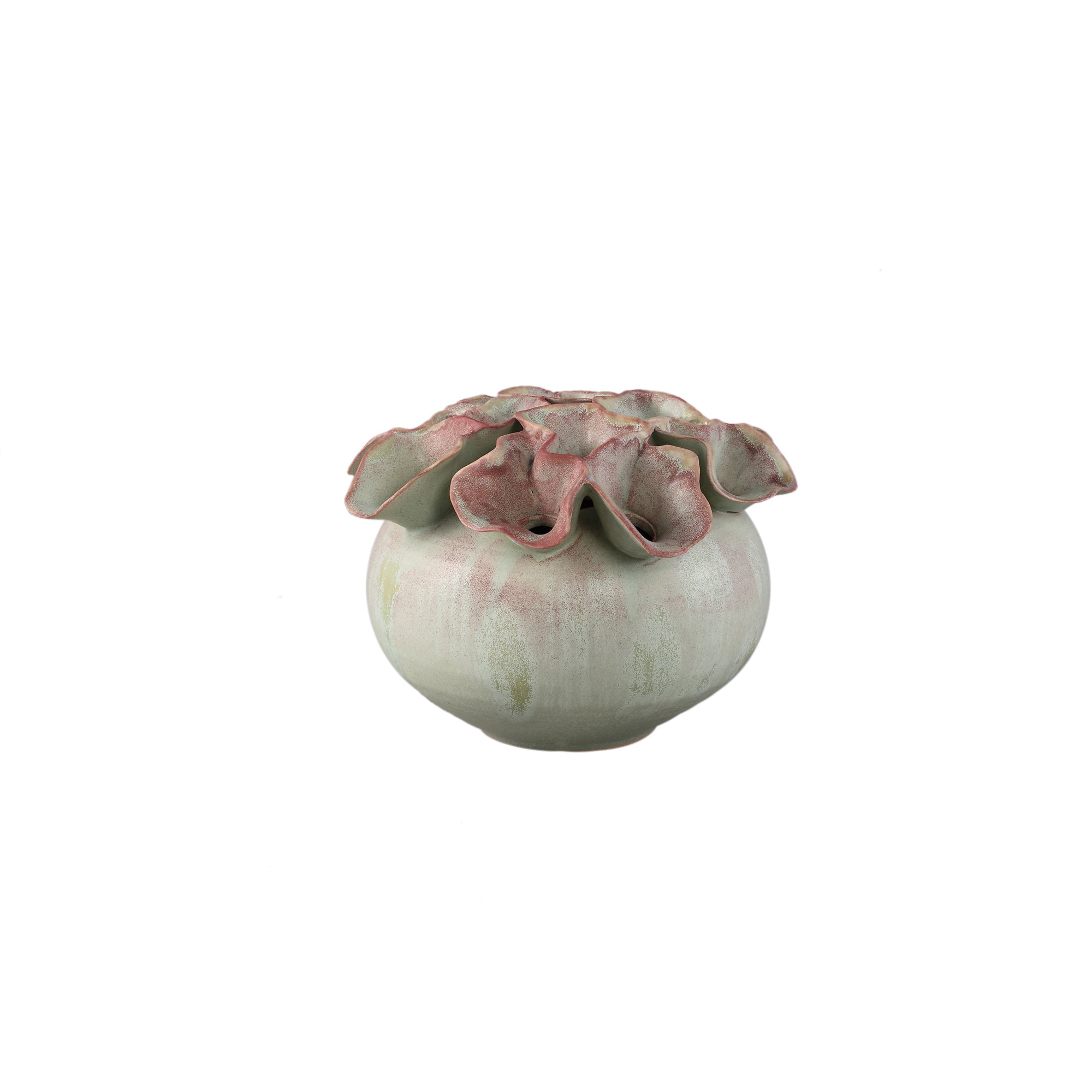 Wat deze vaas echt bijzonder maakt, zijn de bloemvormige openingen die subtiel over het keramiek zijn gesneden. Deze unieke openingen creëren een speels en artistiek effect, waarbij het licht op een interessante manier door de gaten schijnt. Het bloemvormige ontwerp maakt de vaas tot een kunstwerk op zich en voegt een extra dimensie toe aan je decor.