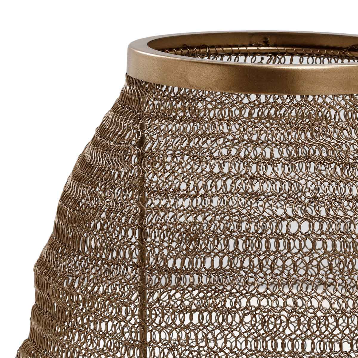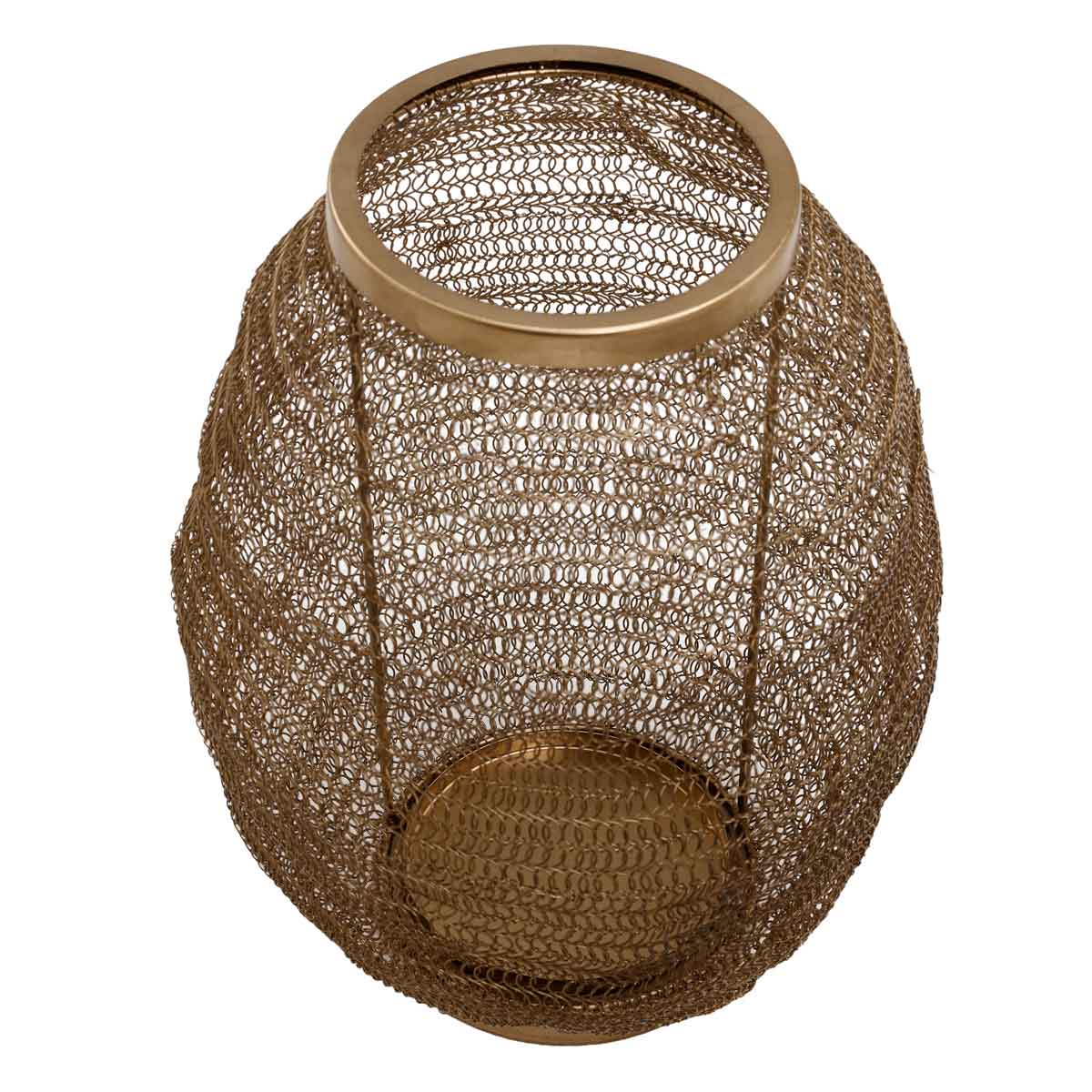 Deze lantaarn geeft sfeer aan de ruimte waar het staat. Met een klein kaarsje of lichtje laat je elke ruimte warmer voelen. De lantaarn is gemaakt van ijzeren ""mesh"" wat er voor zorgt dat er veel licht uit deze koperkleurige lantaarn komt.