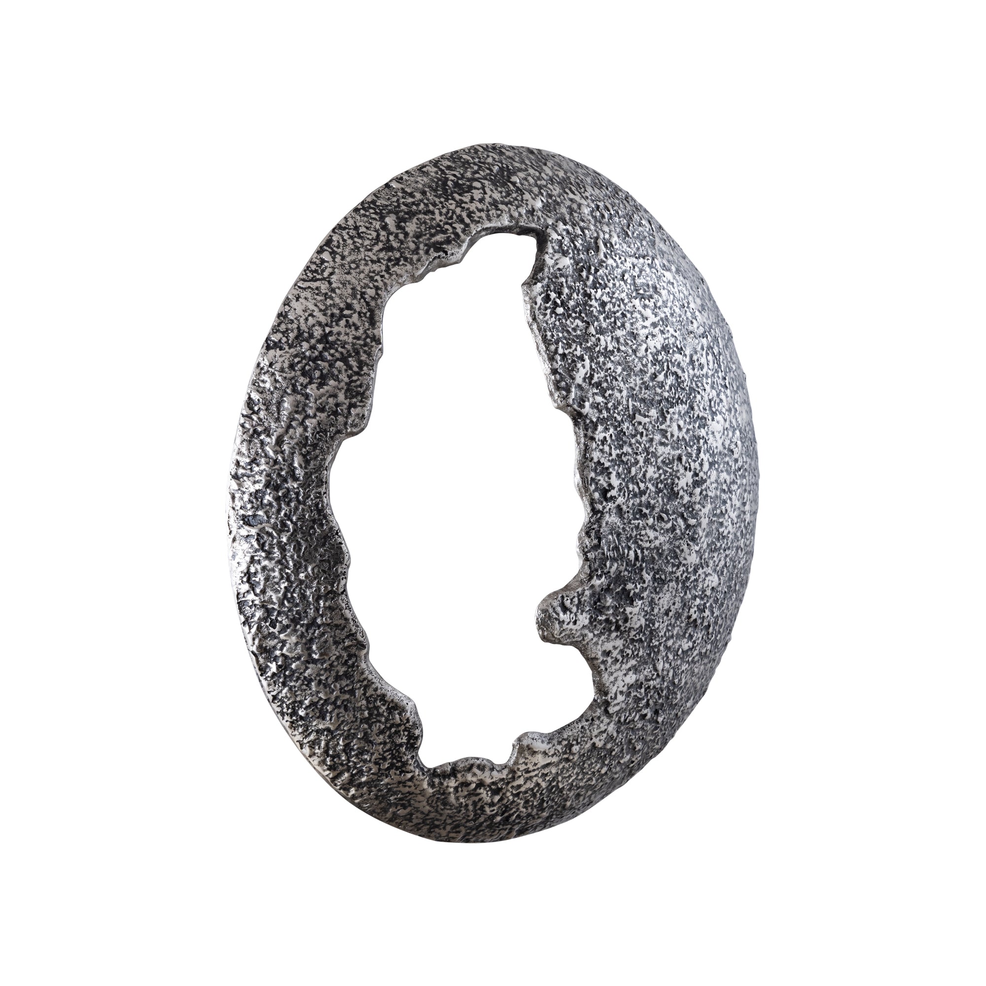Verrijk je interieur met de eigentijdse en luxe uitstraling van het PTMD Merve Silver gegoten aluminium half open ronde wandpaneel en creëer een ruimte die zowel modern als verfijnd is.