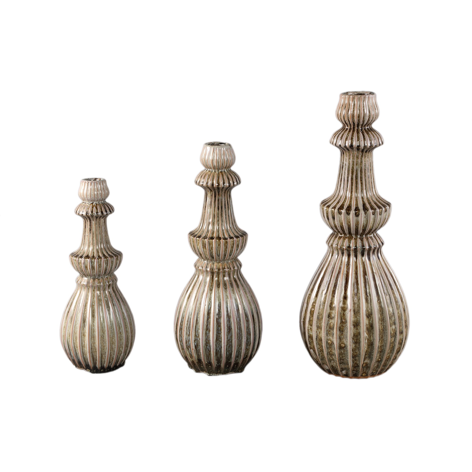 PTMD Myrtle Cream Ceramic Round Ribbed Vase L