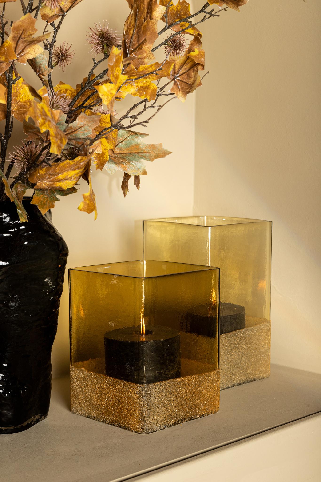 PTMD Windlicht Waya - 15x15x25 cm - Glas - Champagne