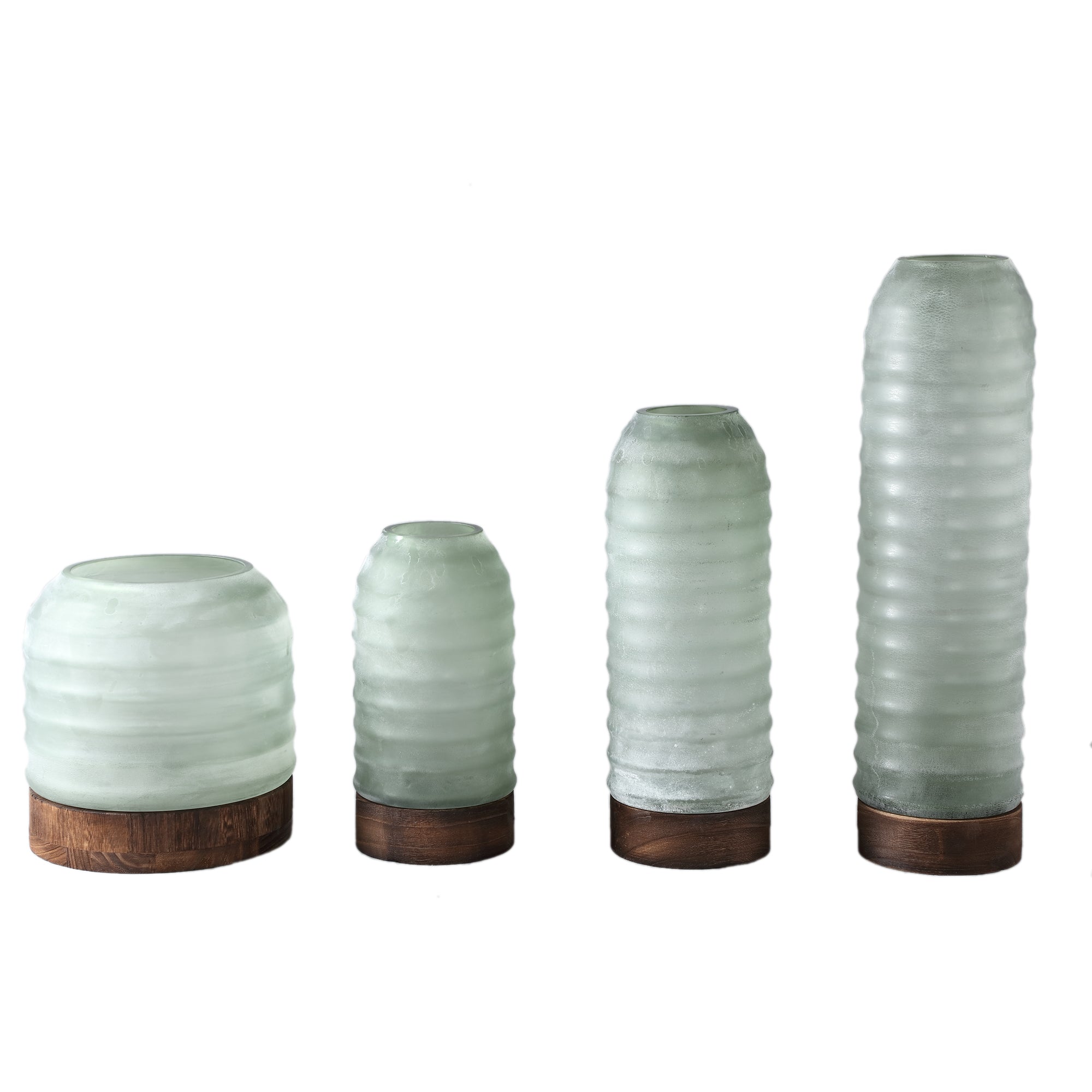 PTMD Yana Green Matte Ribbed Glass Vase Round Low