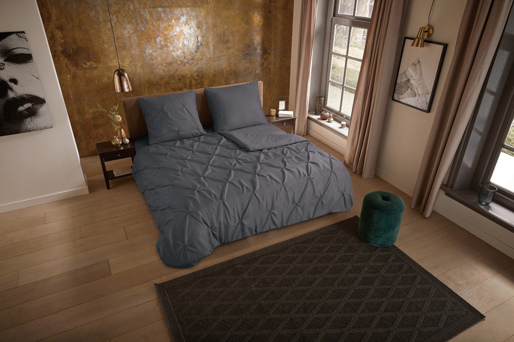 Dekbedovertrek Elegance van Pure straalt luxe en rust uit door het verfijnde stiksel met elegante plooien. Het is gemaakt van 100% polyester-microfiber, een soepele en lichte stof die comfortabel aanvoelt in elk seizoen.