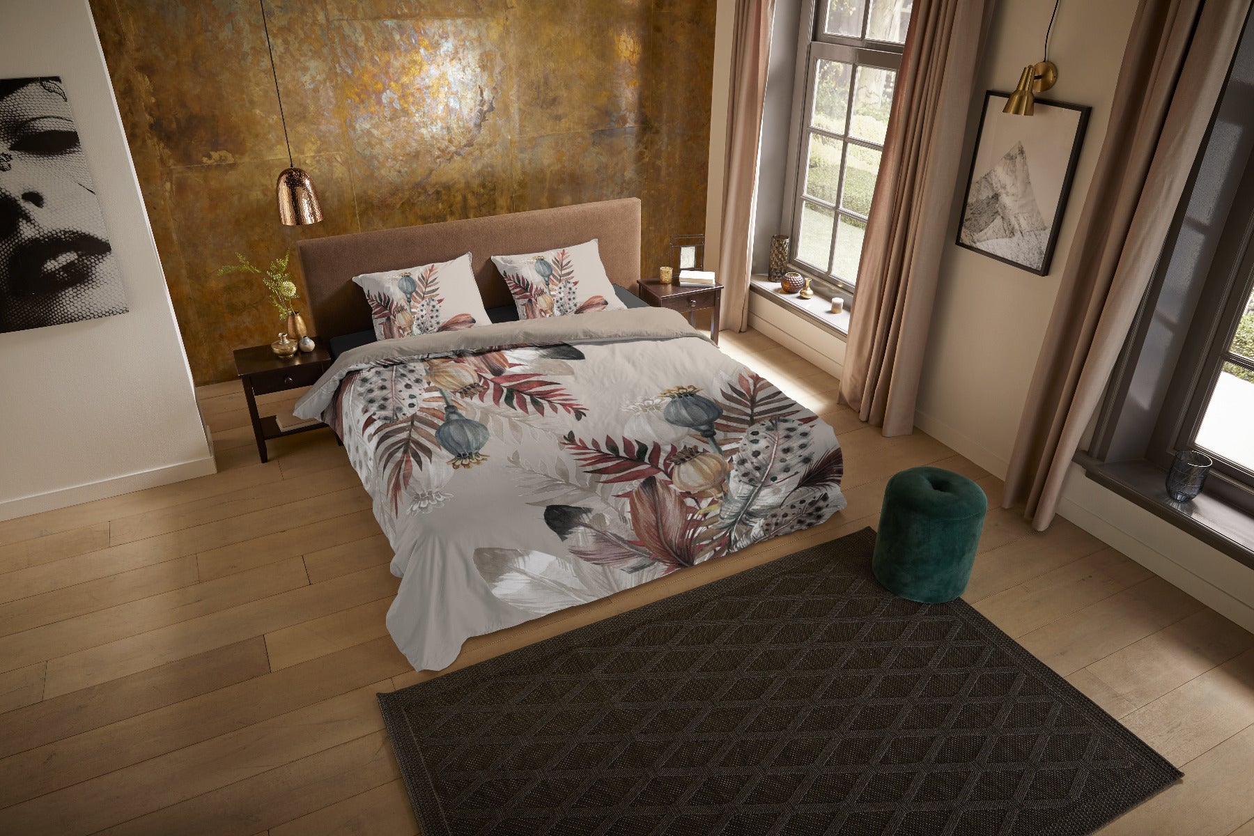 Dekbedovertrek Famm van Pure combineert een natuurlijke uitstraling met een stijlvol design. De print met veren, bladeren en bloemknoppen komt prachtig tot leven op de taupe achtergrond. Een rustig en elegant dessin dat sfeer en warmte toevoegt aan je slaapkamer.