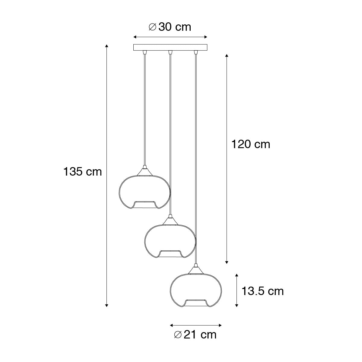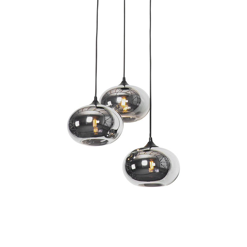 QAZQA Art Deco hanglamp zwart met smoke glas rond 3-lichts- Busa