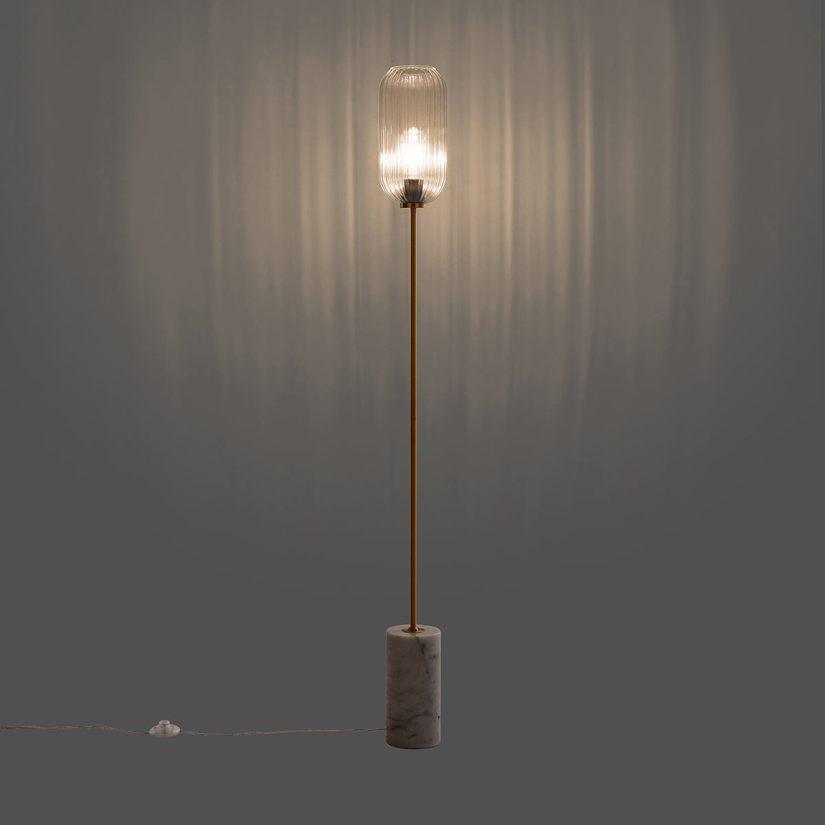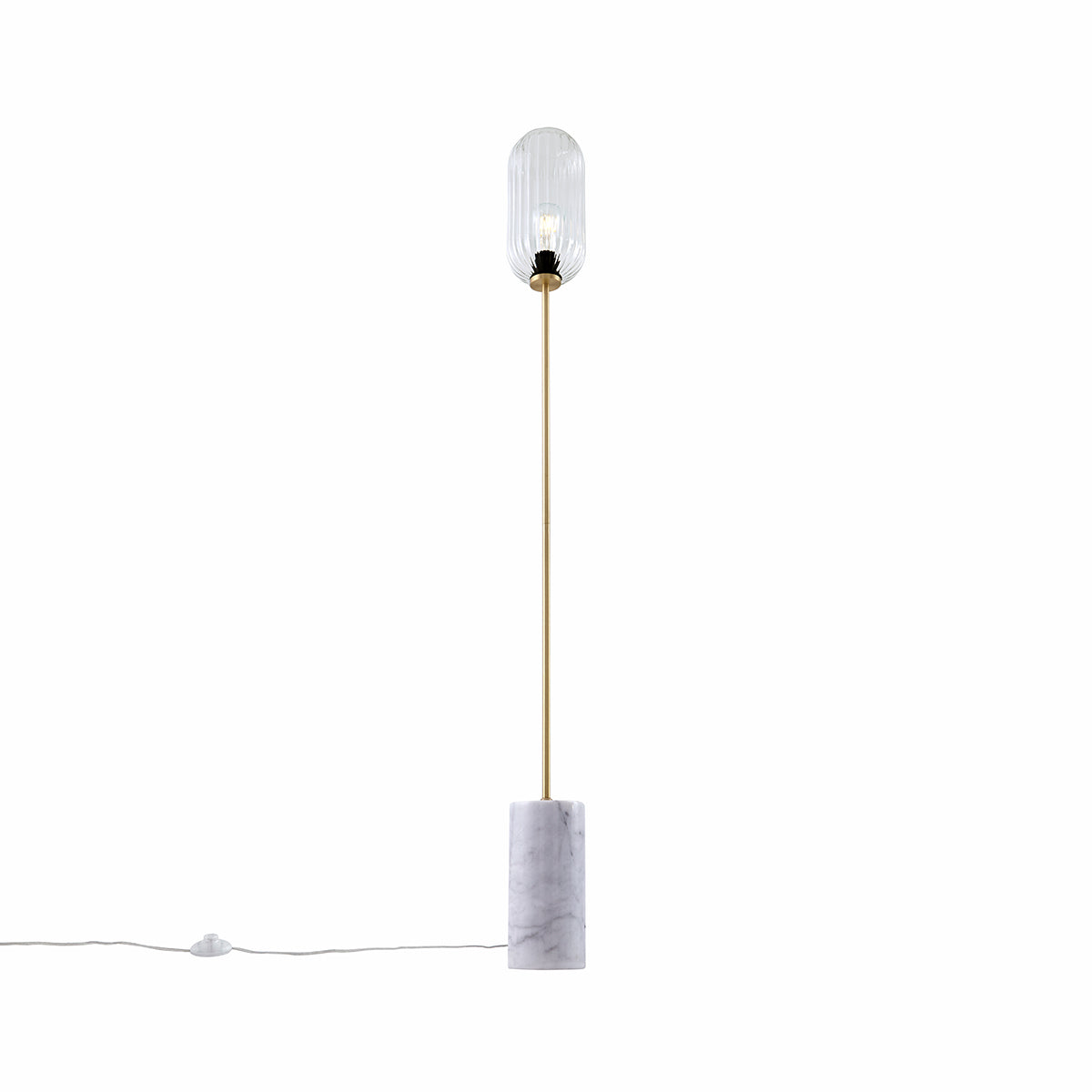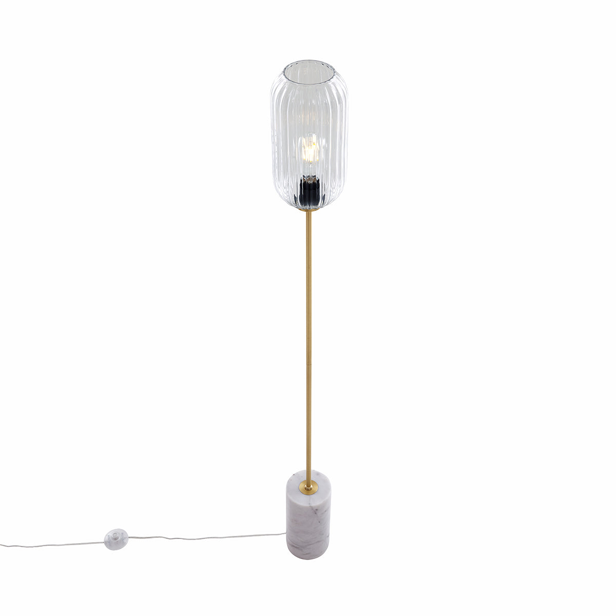 QAZQA Art Deco vloerlamp messing met helder glas - Rid