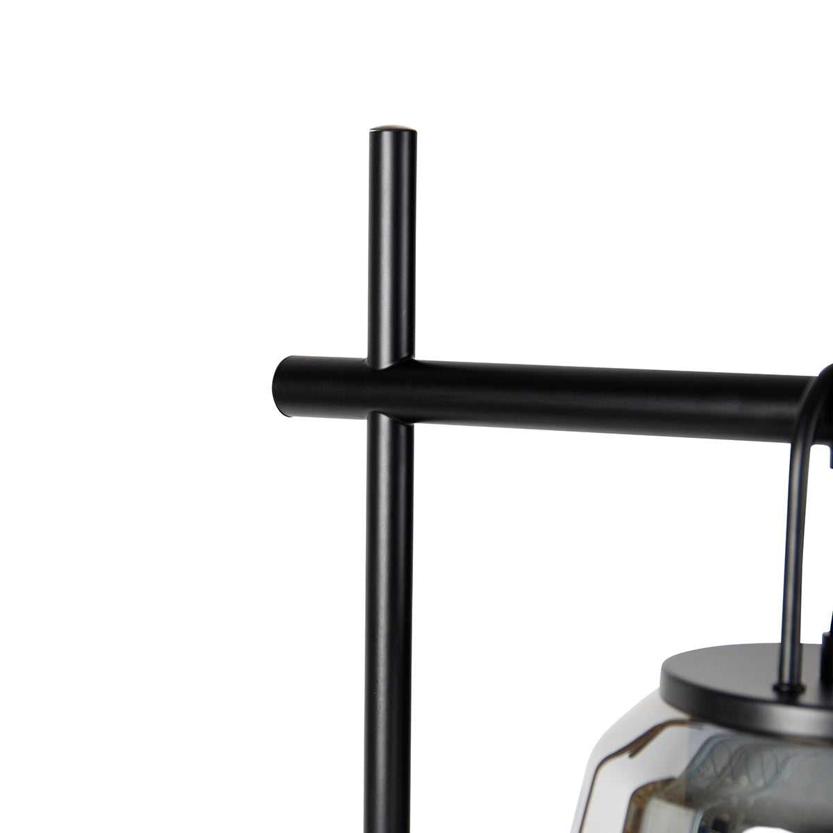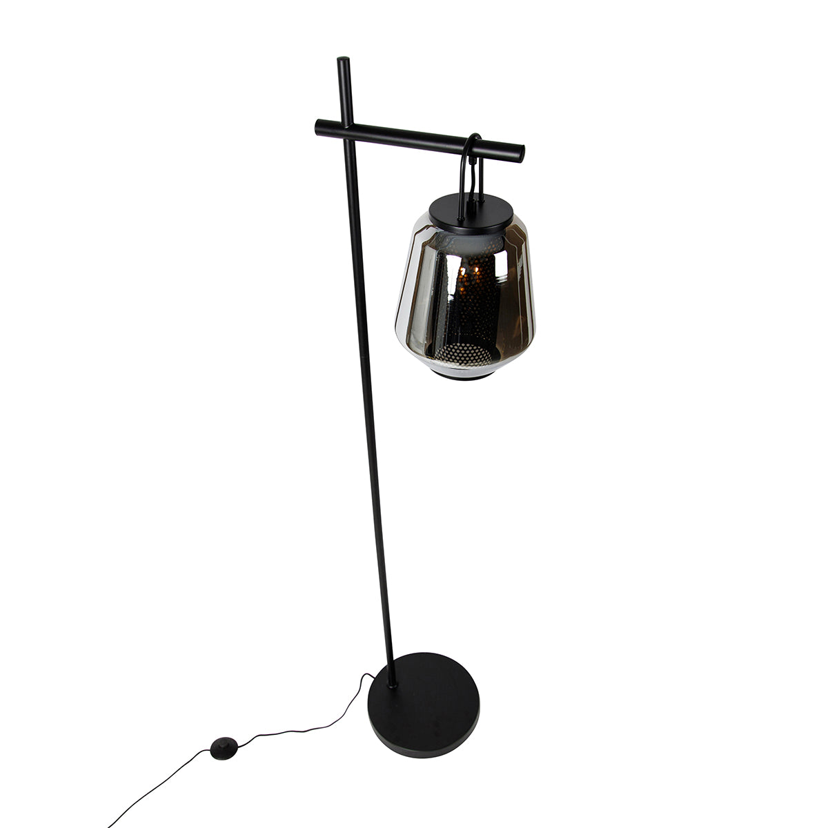 QAZQA Art deco vloerlamp zwart met smoke glas - Kevin