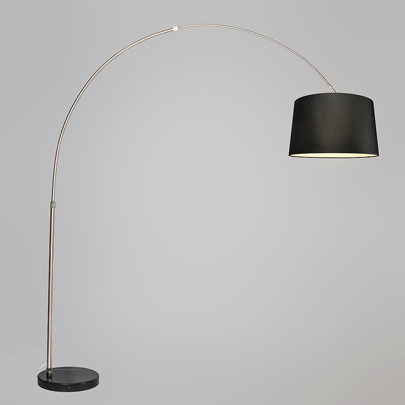 QAZQA Booglamp staal stoffen kap zwart 45 cm - XXL