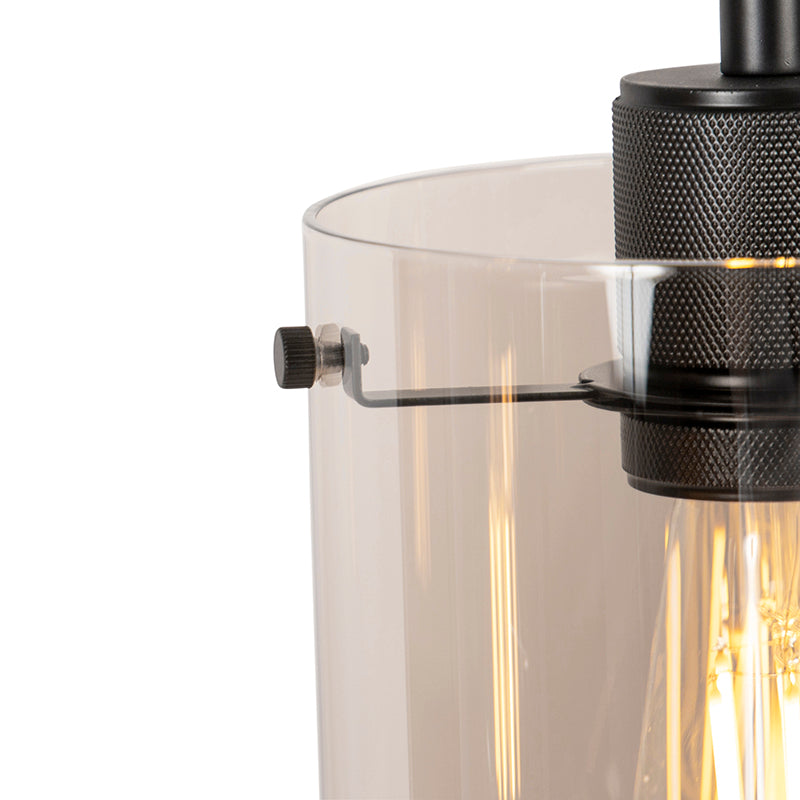 QAZQA Design hanglamp zwart met smoke glas 4-lichts - Dome