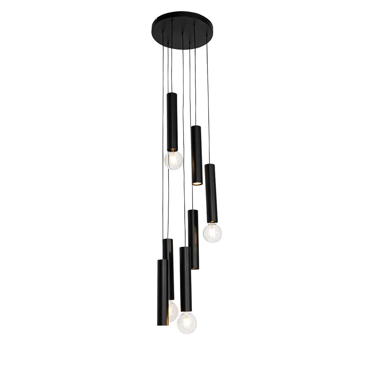 QAZQA Design hanglamp zwart rond 7-lichts - Tuba