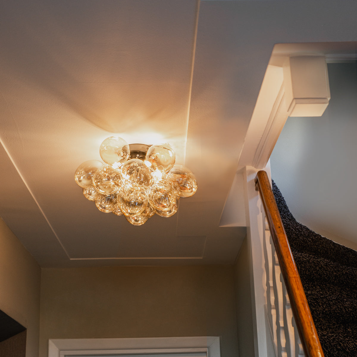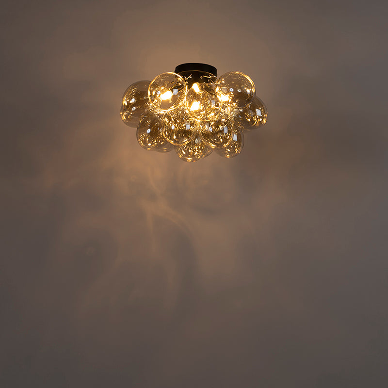 QAZQA Design plafondlamp zwart met amber glas 4-lichts - Uvas