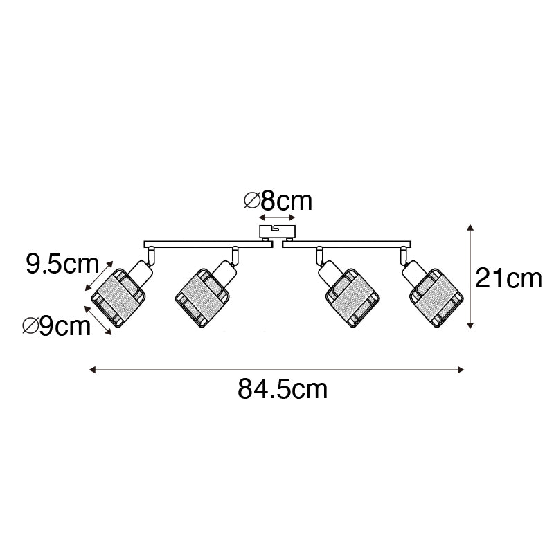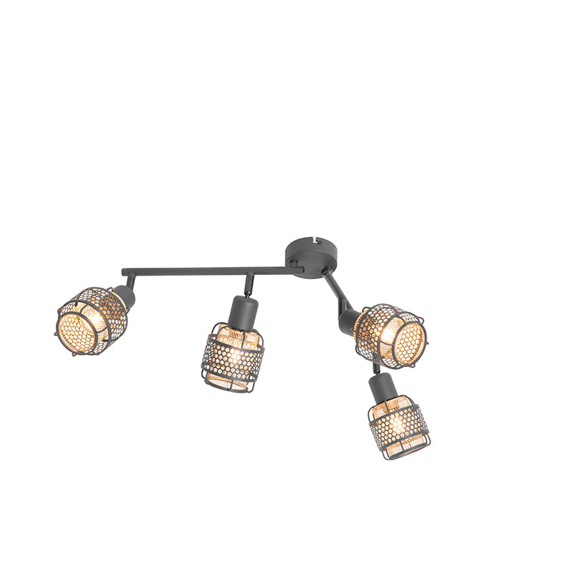 QAZQA Design plafondlamp zwart met goud 4-lichts langwerpig - Noud