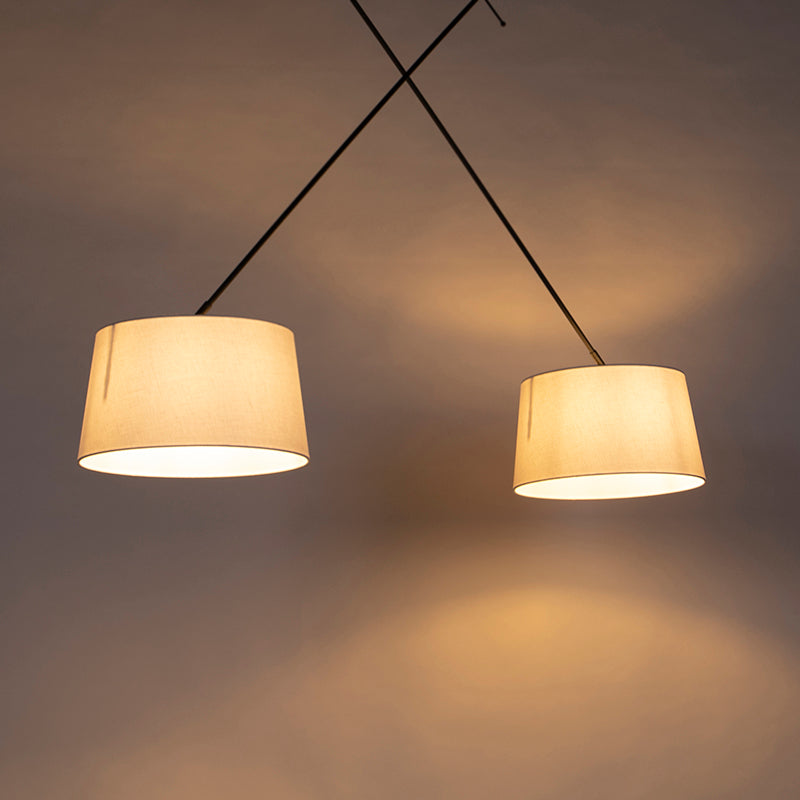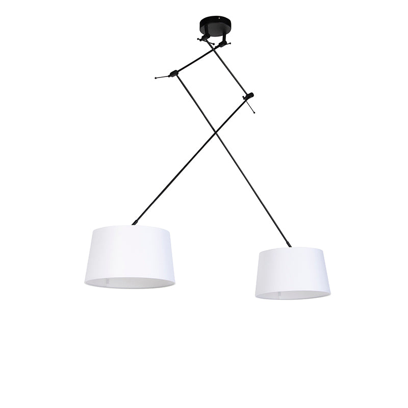 QAZQA Hanglamp zwart met linnen kappen wit 35 cm 2-lichts - Blitz