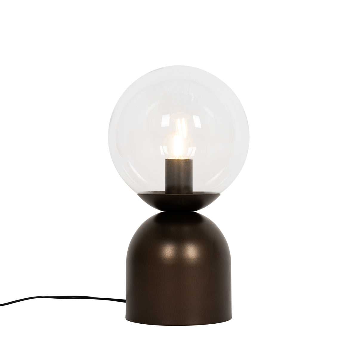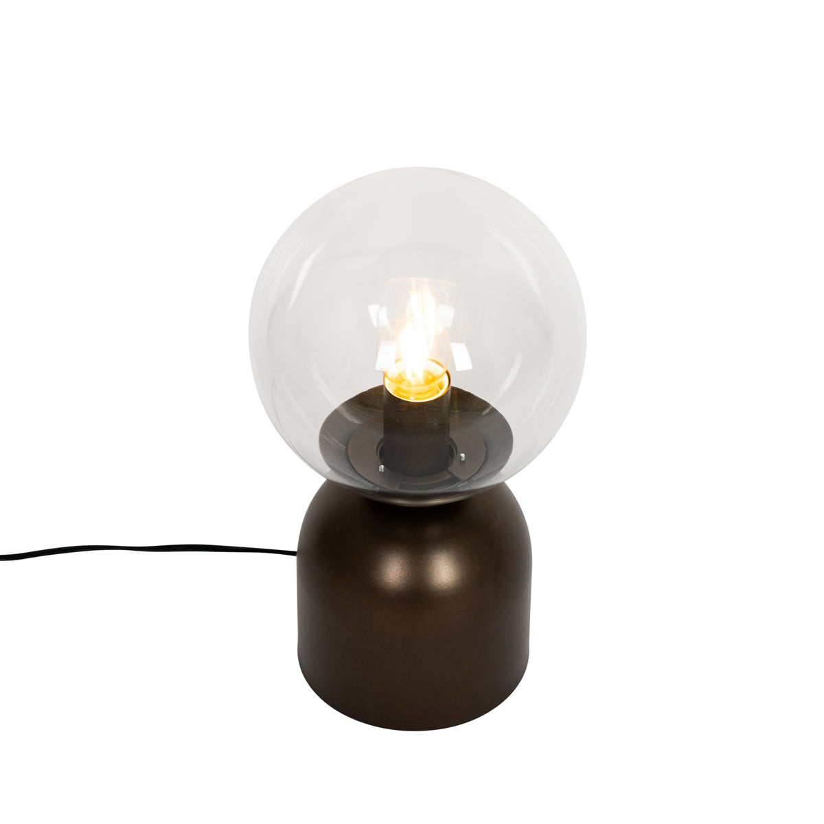 QAZQA Hotel chique tafellamp donkerbrons met helder glas - Pallon