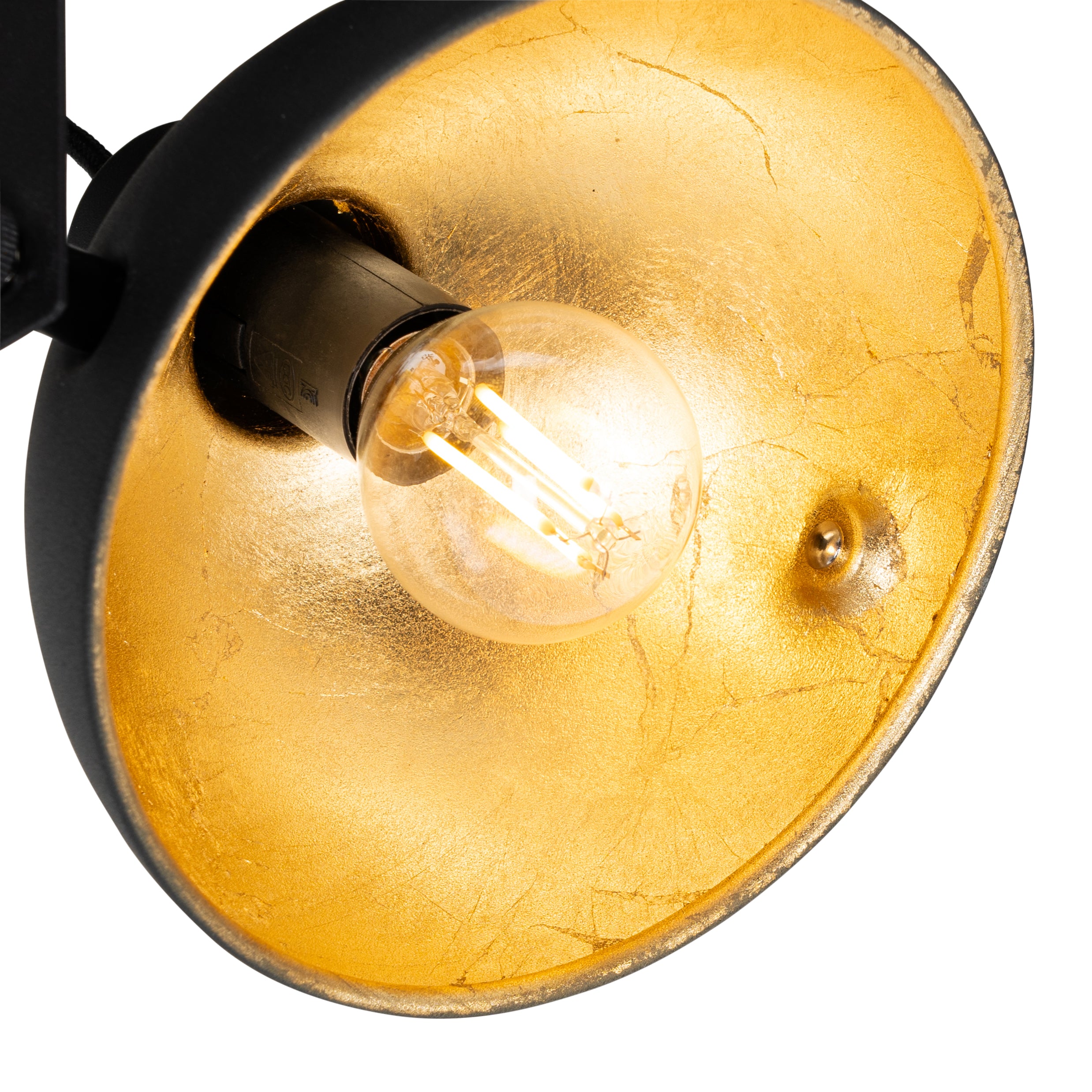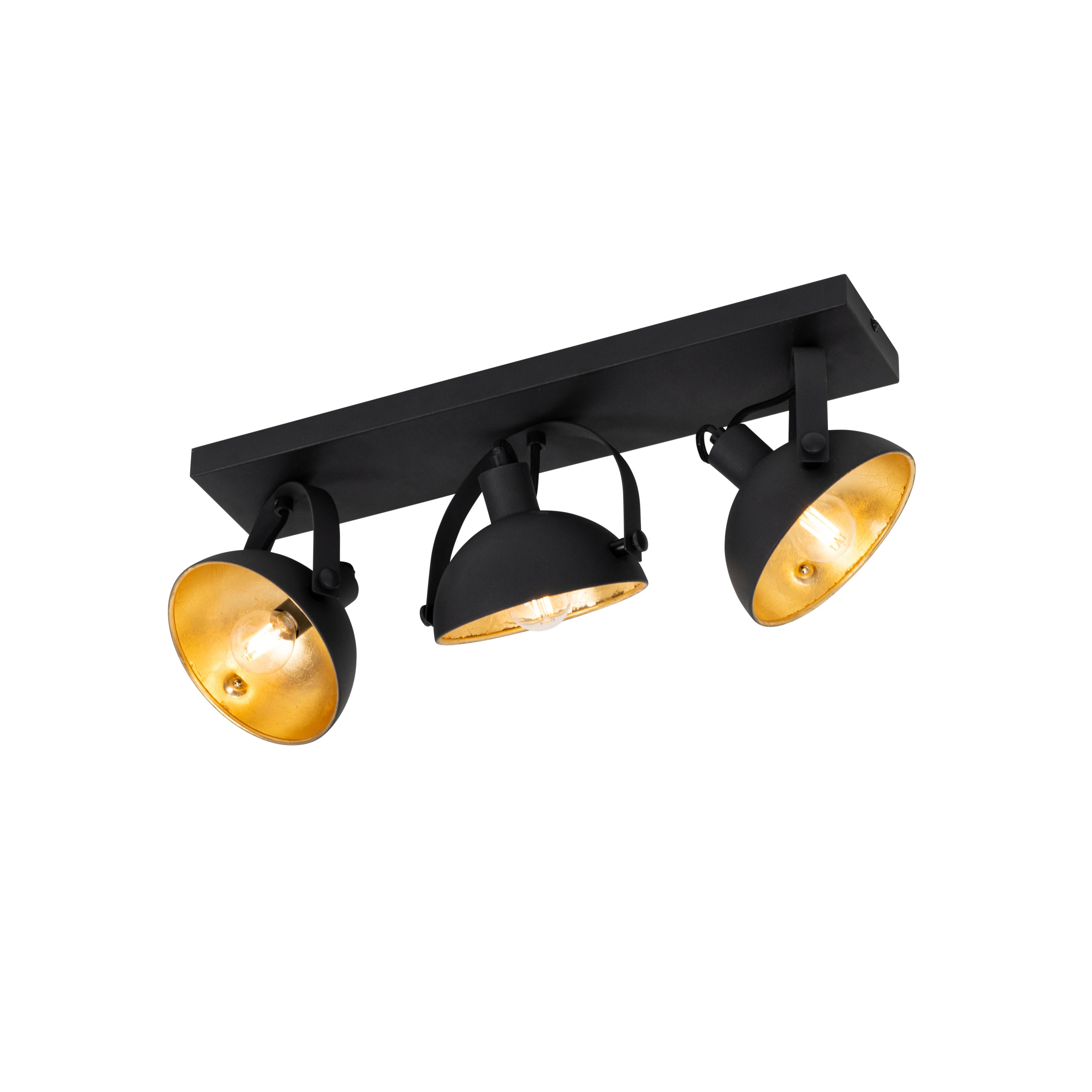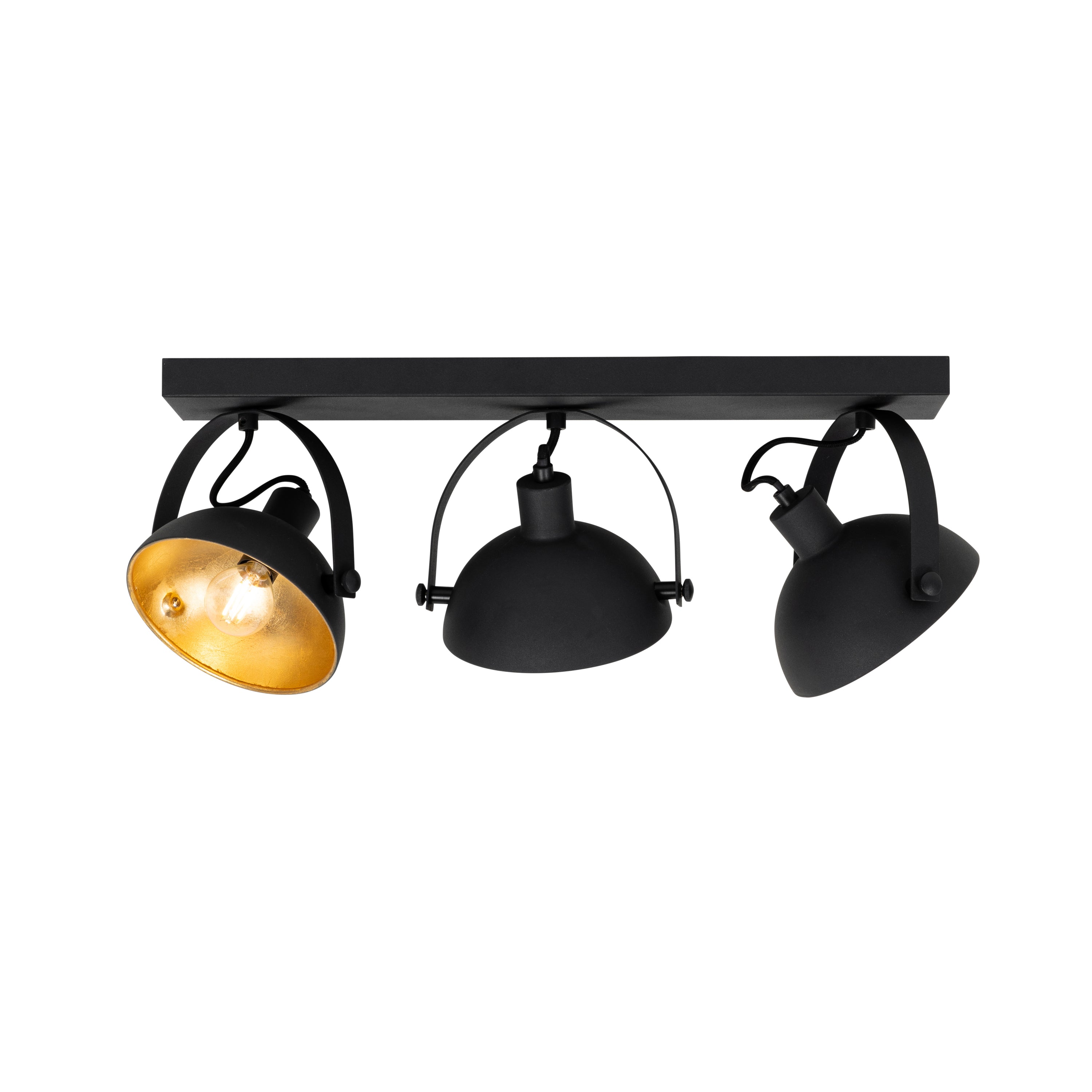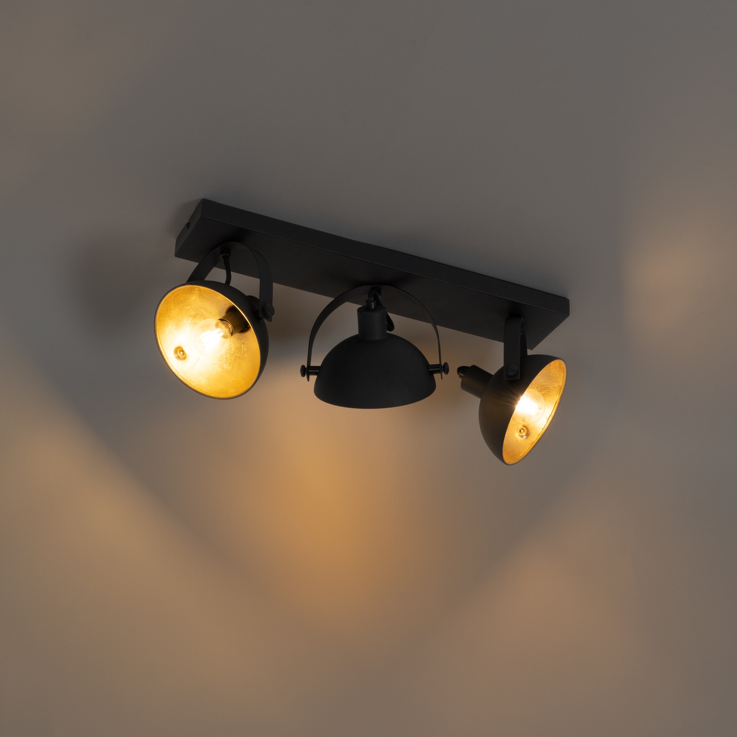 QAZQA Industriële plafondlamp zwart met goud 3-lichts verstelbaar -